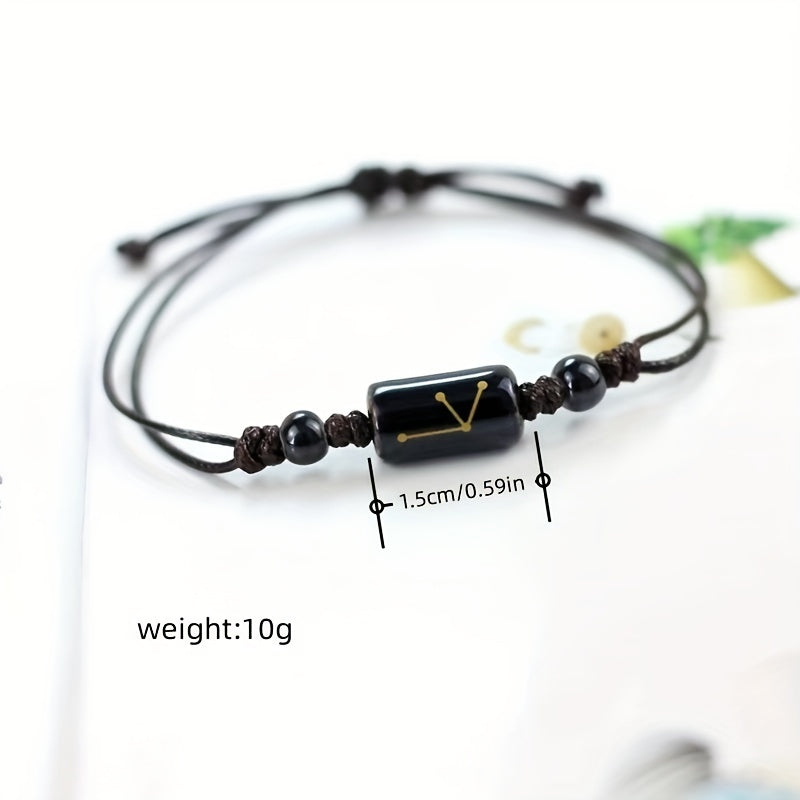 This bracelet features the 12 zodiac constellations and is made with high-quality beads. The adjustable rope bangle ensures a comfortable fit.