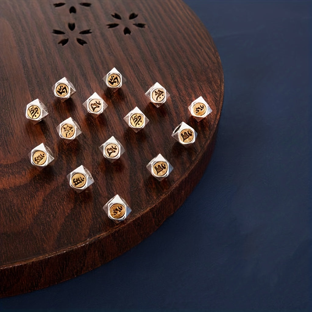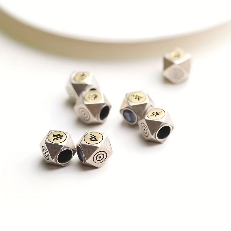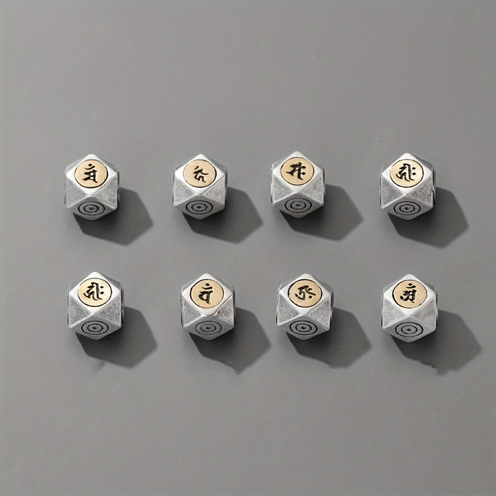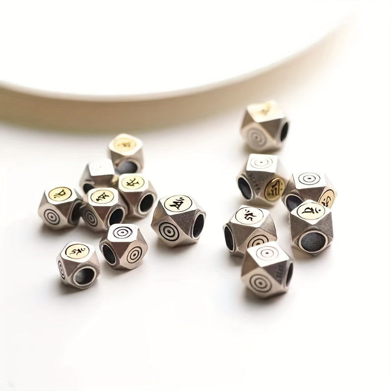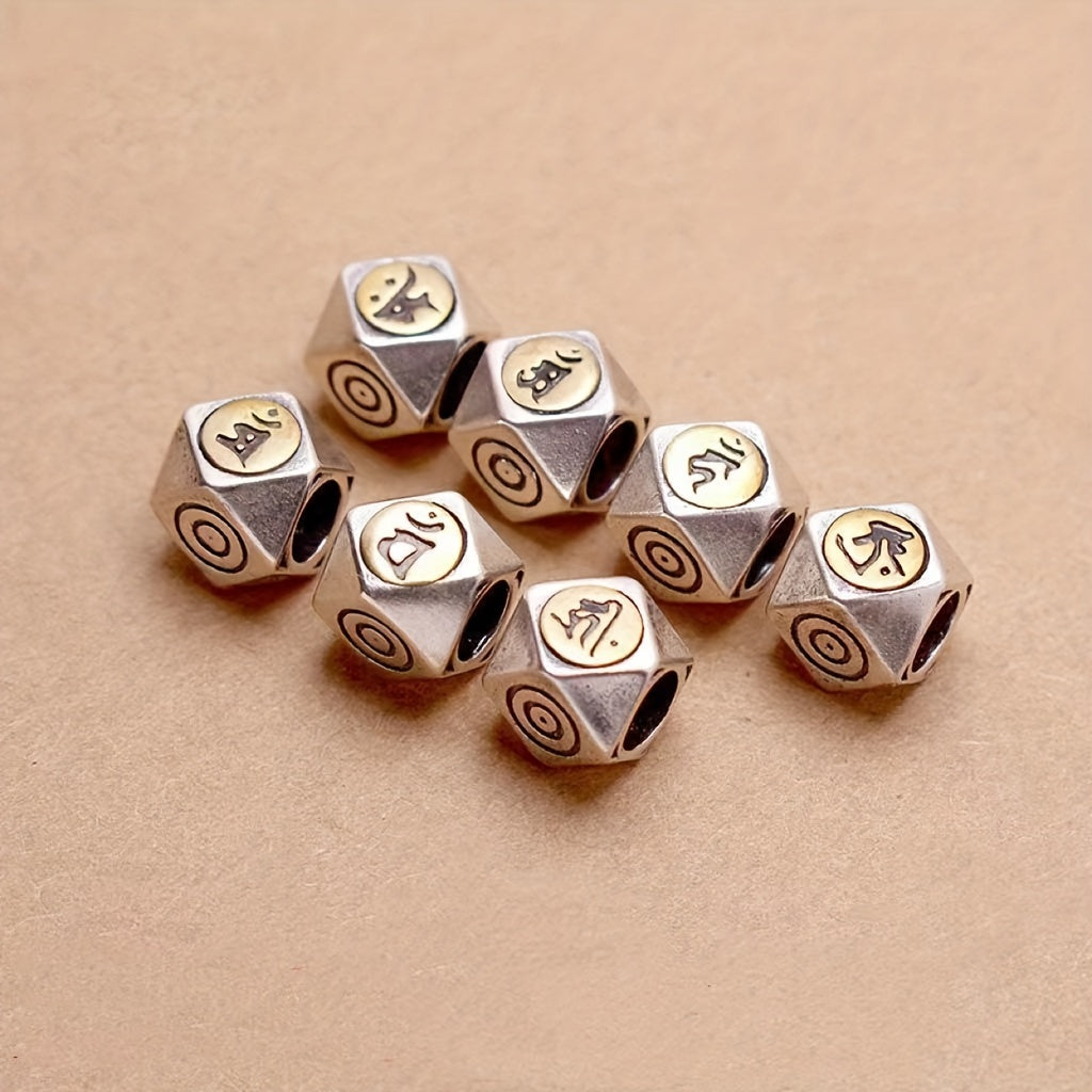 These silvery polyhedron shape alloy beads feature zodiac symbols. Ideal for DIY bracelet and necklace projects.