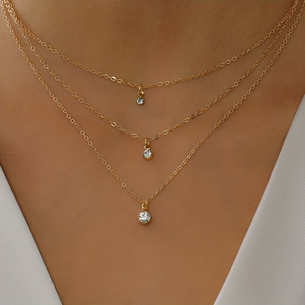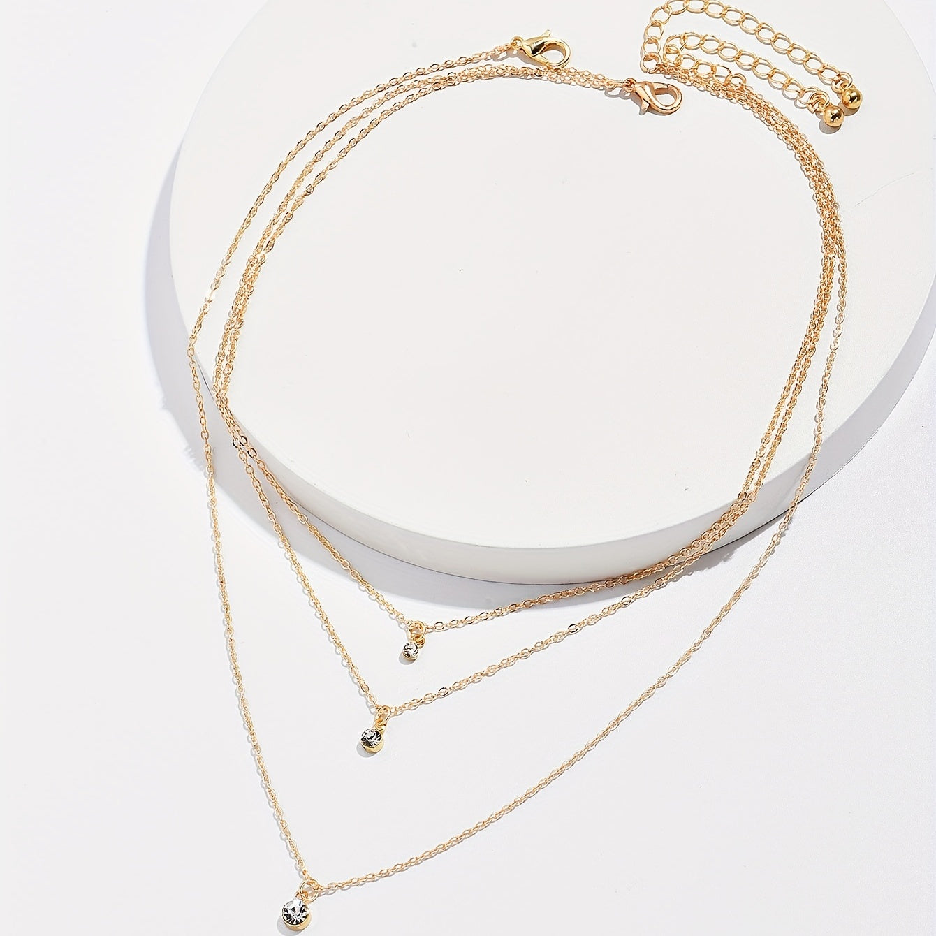 Elevate your style with this multilayer necklace featuring a tiny round shape rhinestone pendant. Perfect for adding a touch of personality to your look.