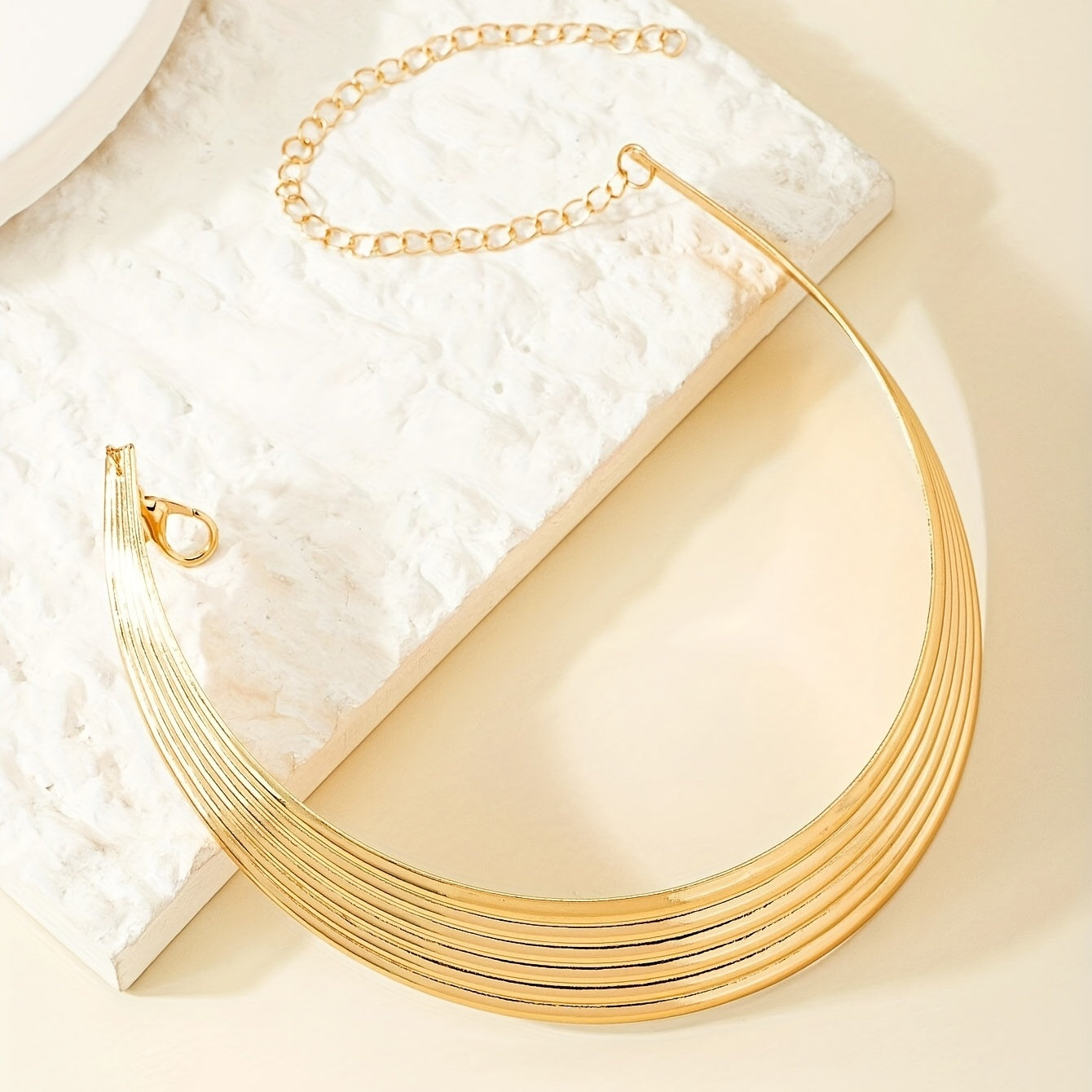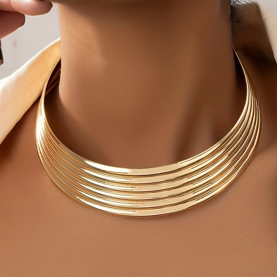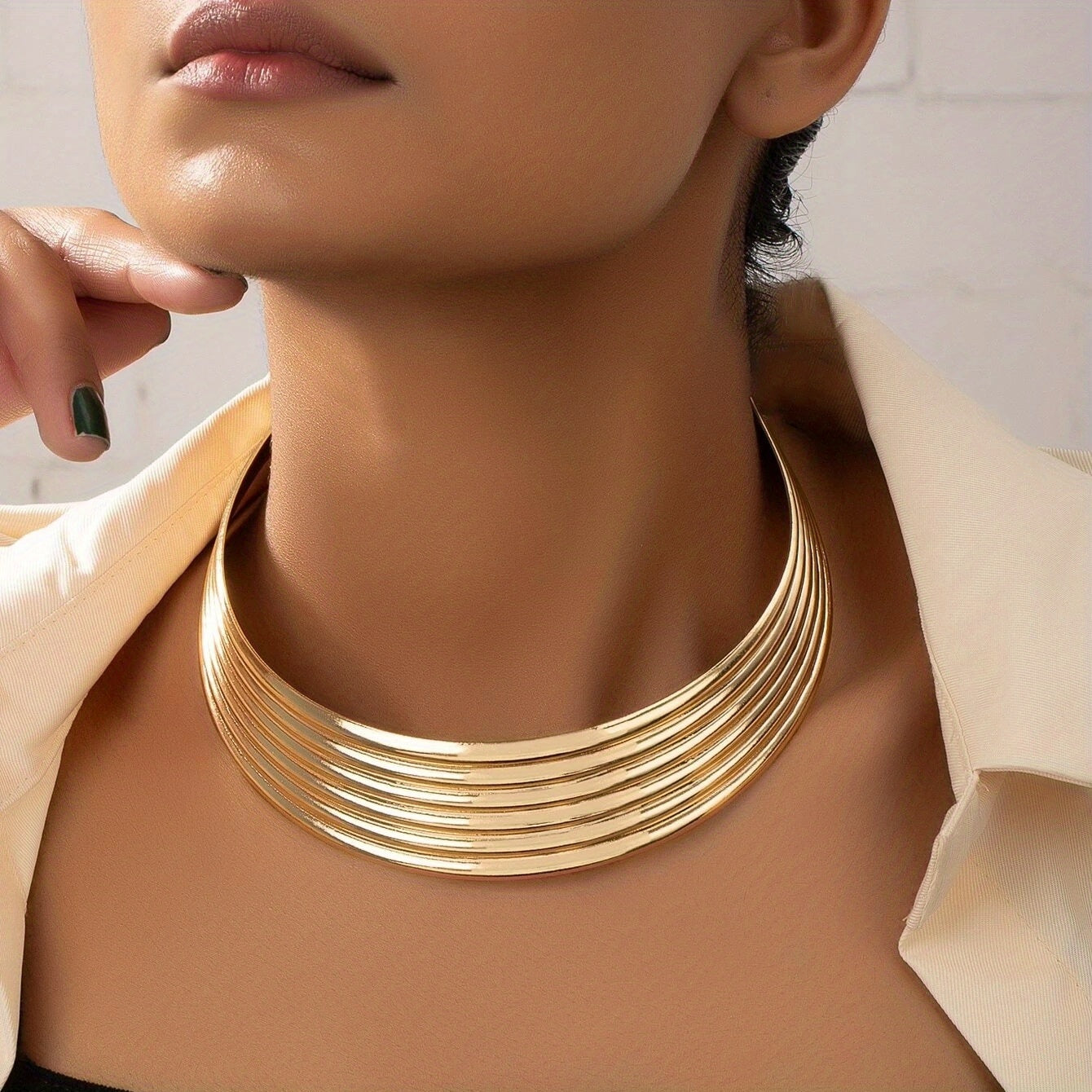 Elevate your style with this chic thread choker necklace featuring an exaggerated design. Crafted with 18K plating, this statement piece adds a touch of luxury to any outfit.