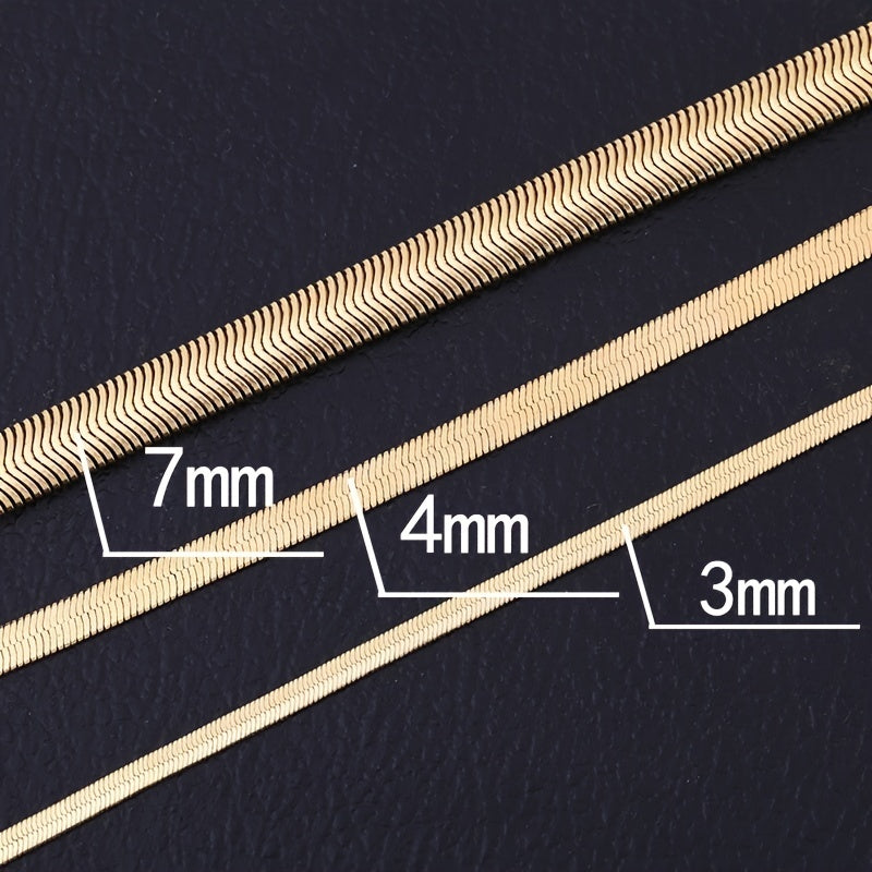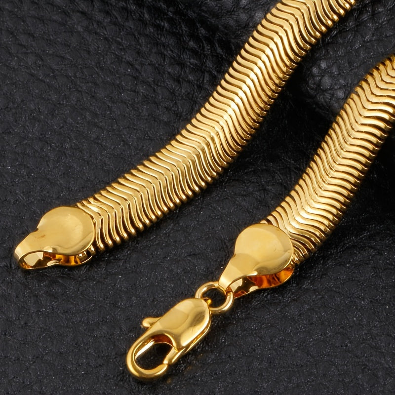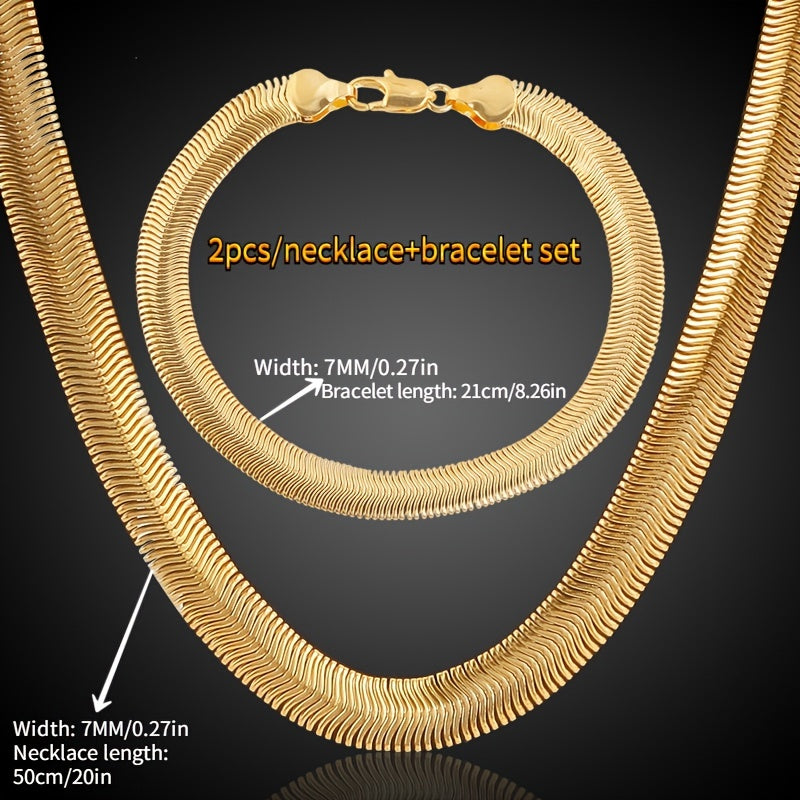 Add flair to your style with this European and American hip hop necklace and bracelet set. The set includes a high flat snake chain necklace and bracelet. Available in sizes 3mm, 4mm, and 7mm wide.