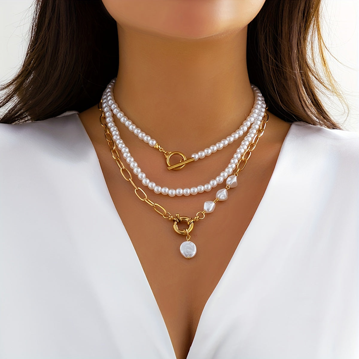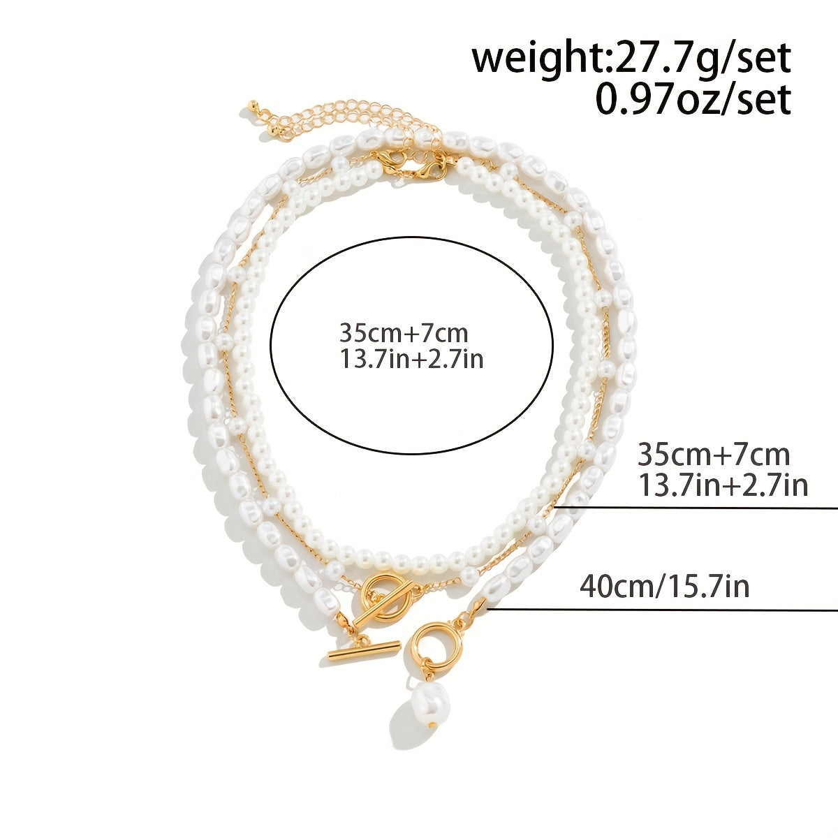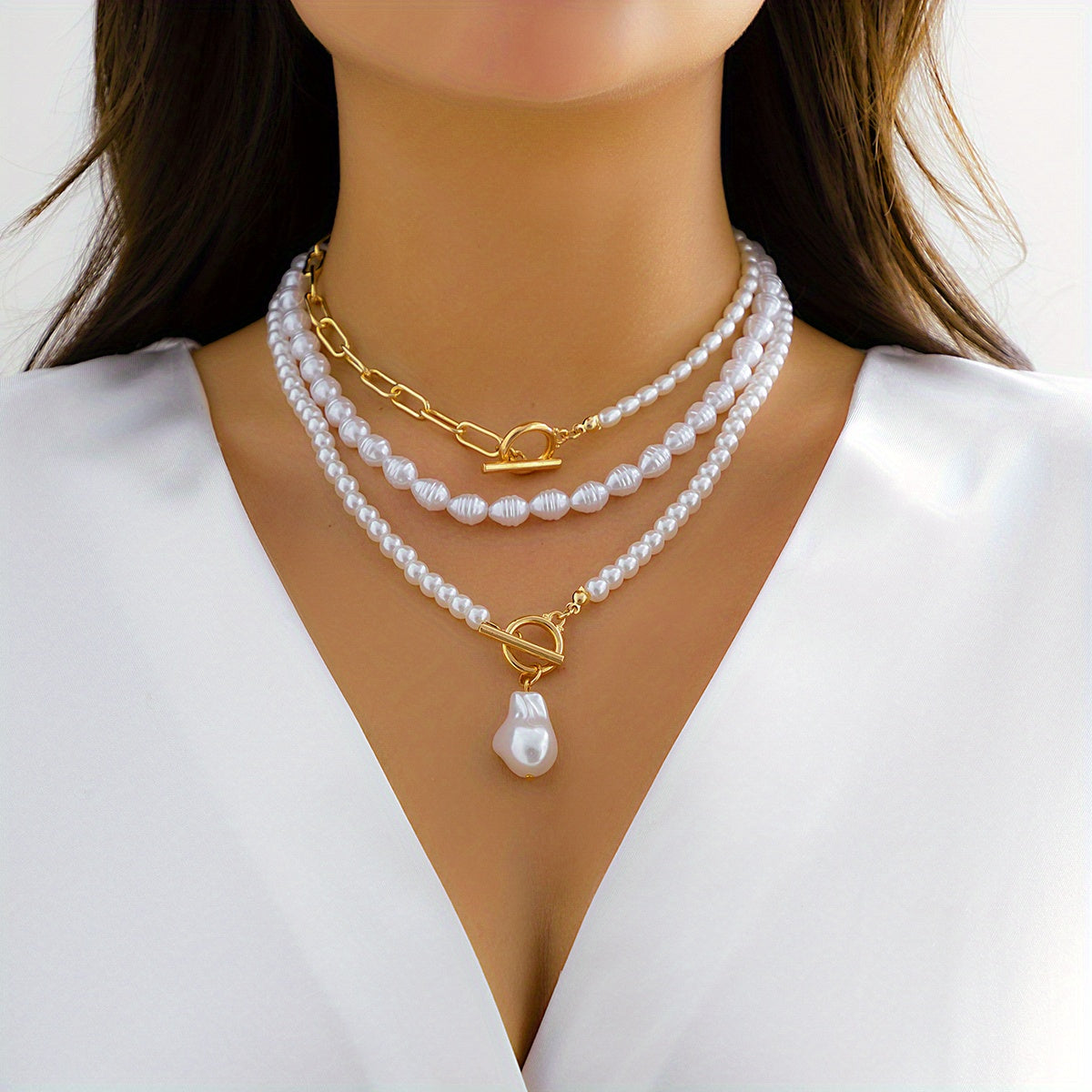Add a touch of vintage charm with this 3-piece baroque style faux pearl pendant set necklace. Perfect for female accessories to elevate your look.