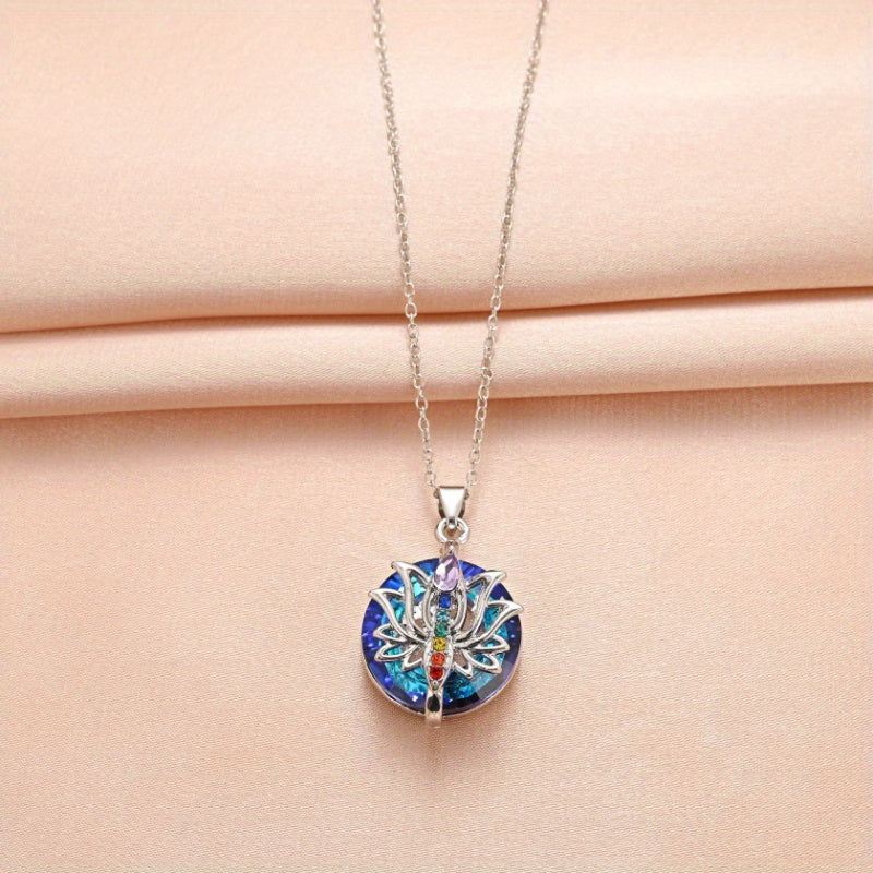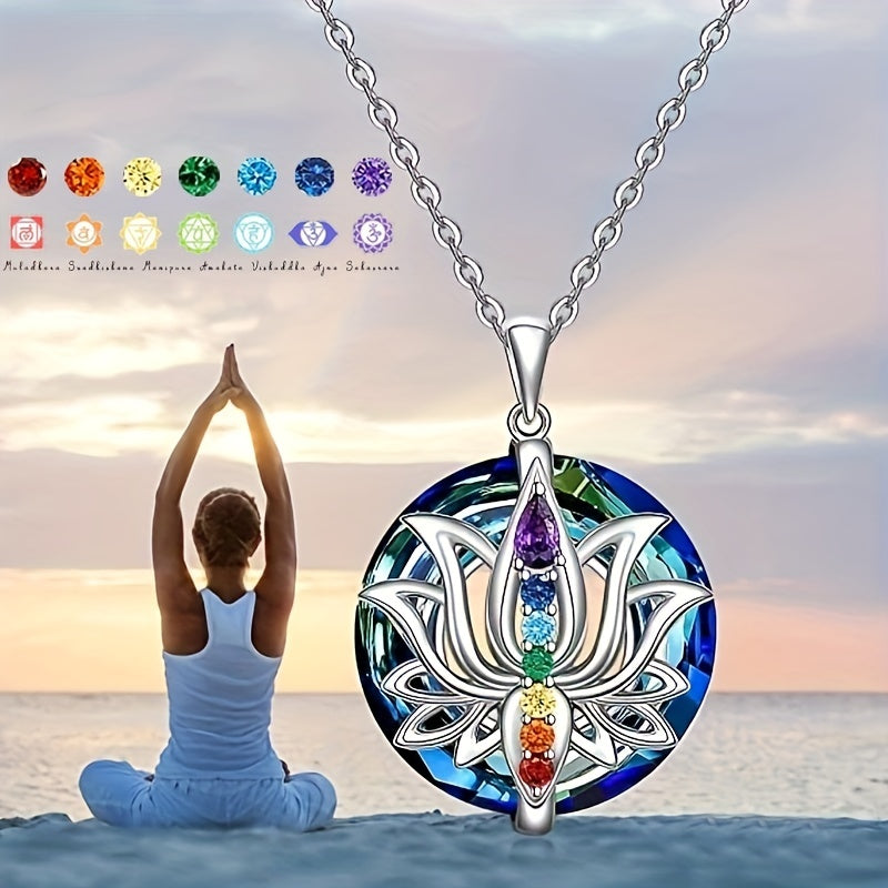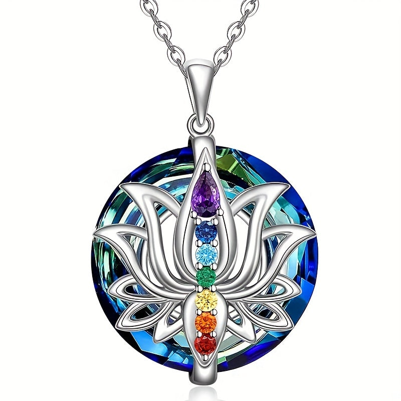 This necklace features a lotus pendant with 7 chakra healing stones, perfect for balancing female energy and promoting overall wellness. Ideal for banquets, yoga enthusiasts, holiday parties, and anniversary gifts.