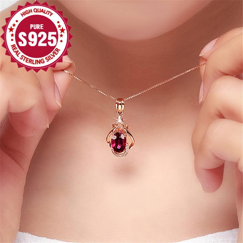 925 Sterling Silver Water Drop Pendant Necklace with Gemstone