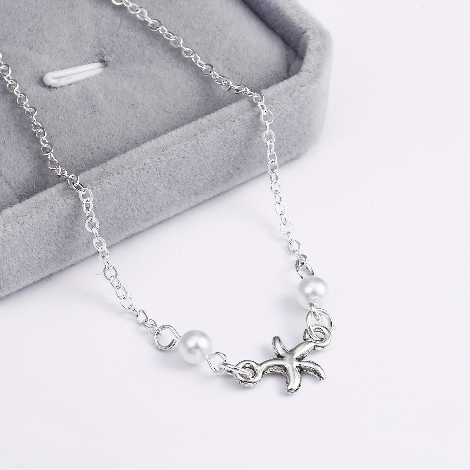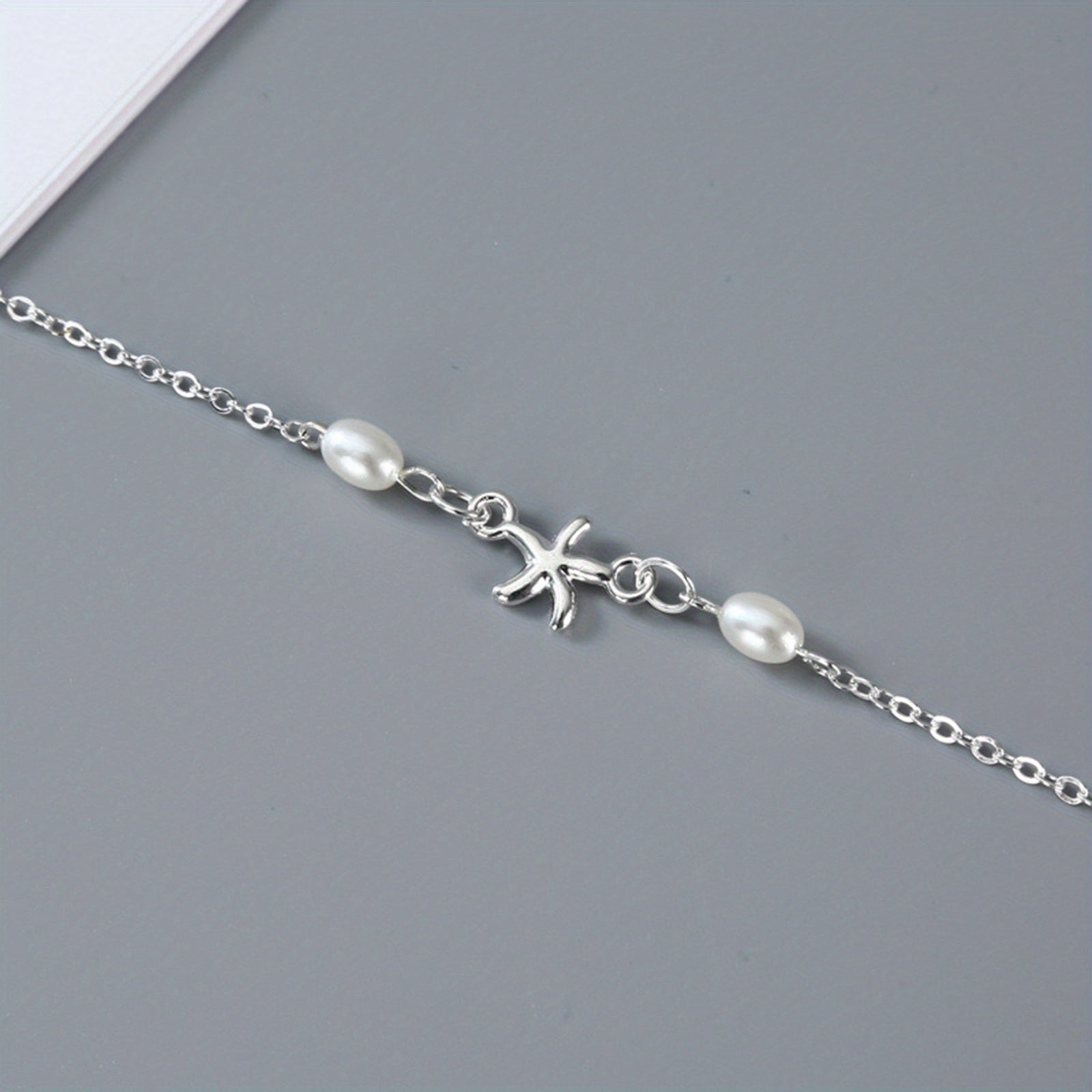 Add a touch of beach style with this ankle chain featuring a starfish and faux pearl design.