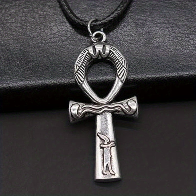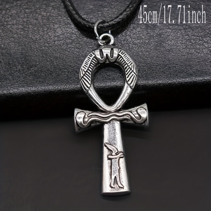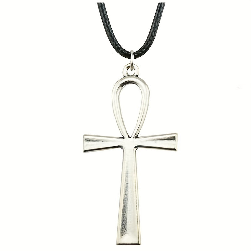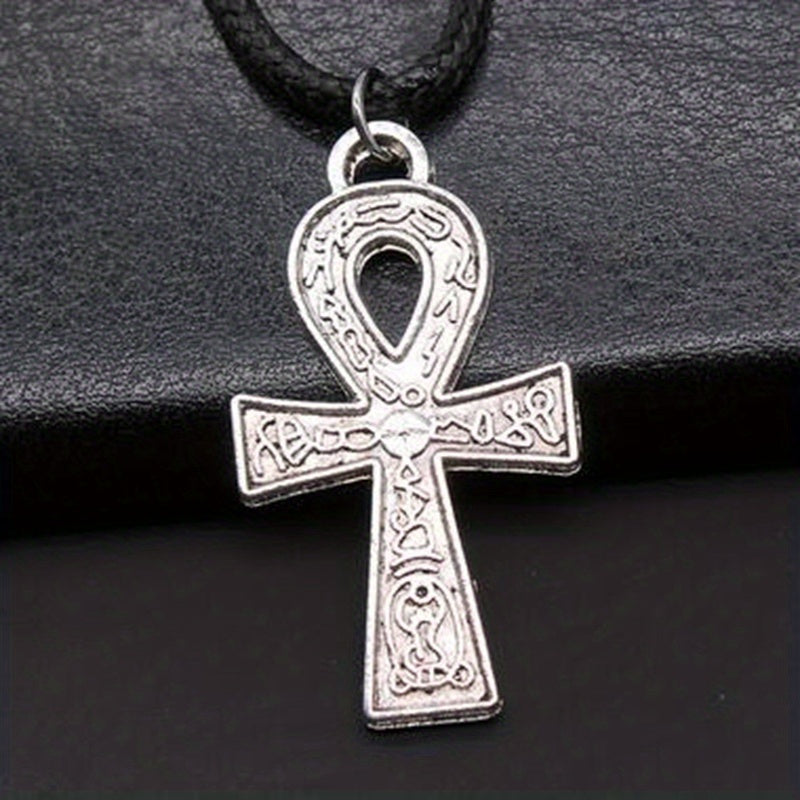 This necklace features a large Ankh punk cross pendant on a wax rope leather choker. Perfect for hip hop enthusiasts. Ideal for parties, gifts, and holidays.
