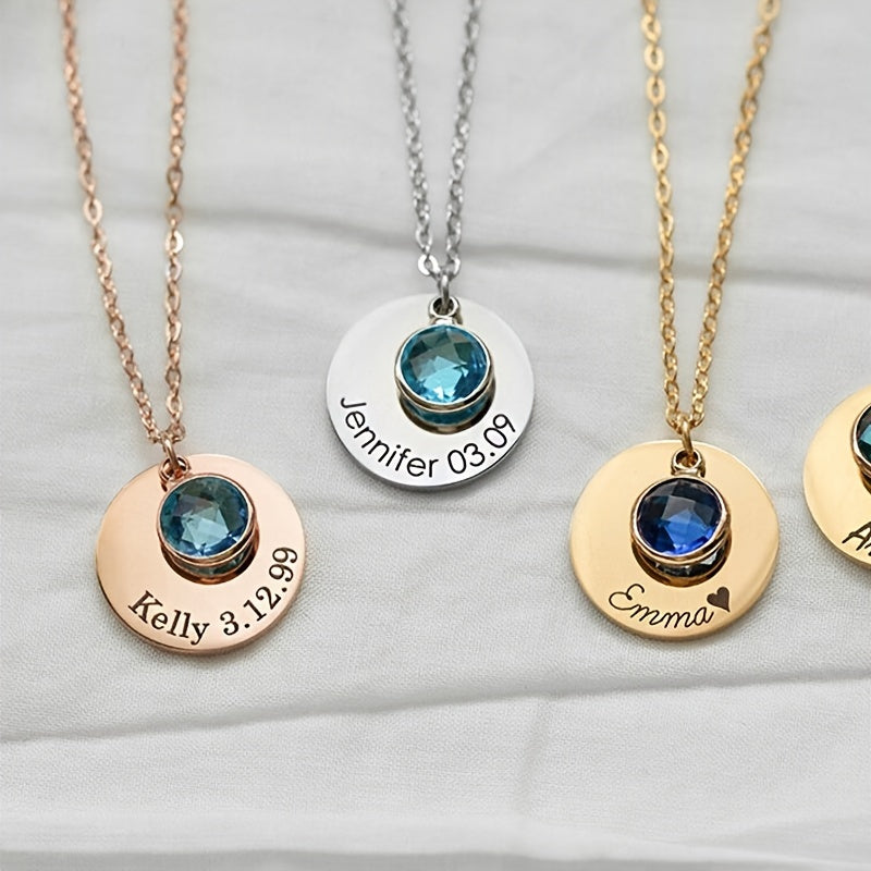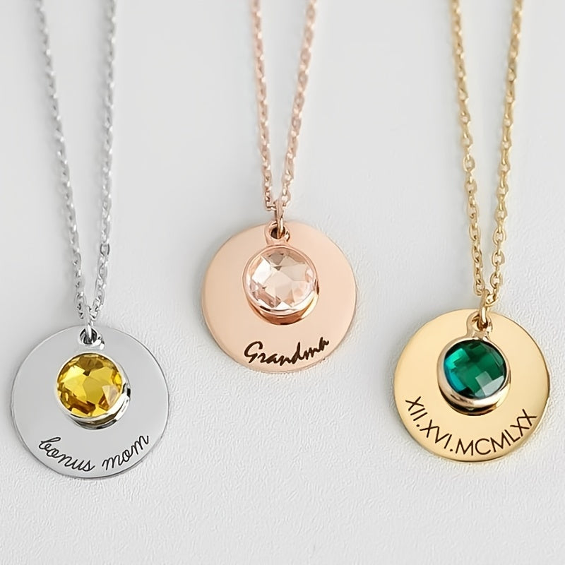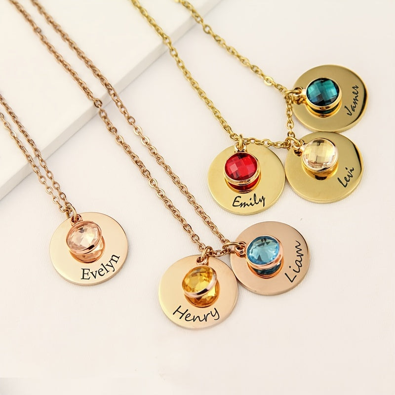 This beautiful necklace features twelve birthstones and can be personalized with custom lettering. Perfect for birthdays, Valentine's Day, or as a special gift for family members.