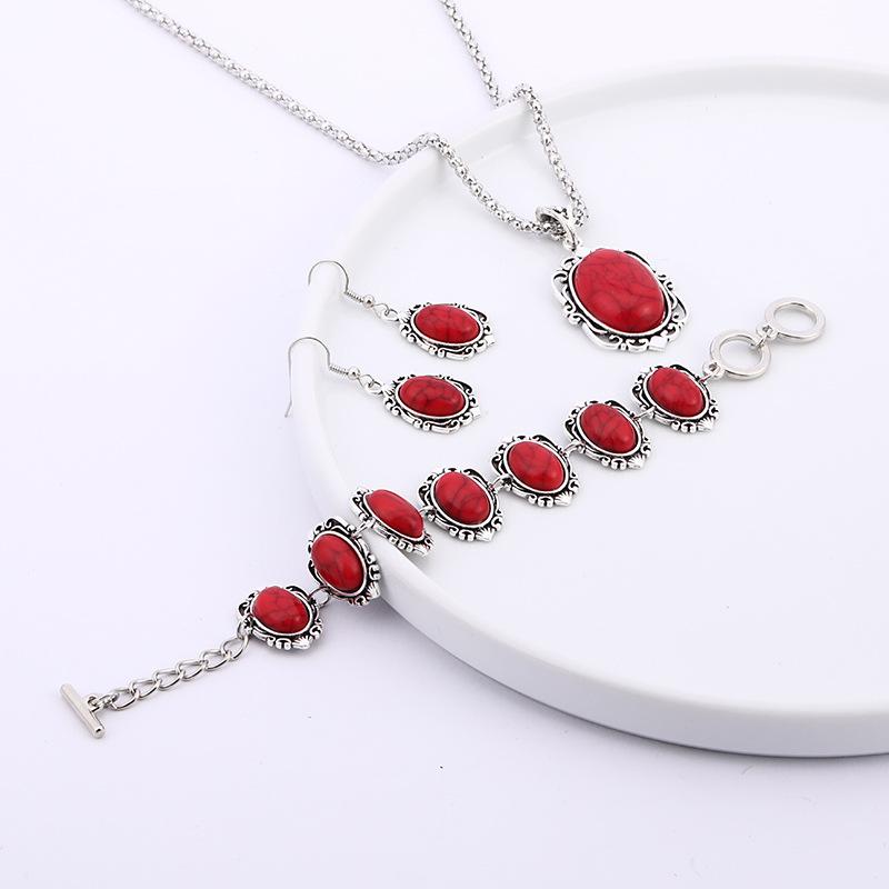 Enhance your style with this vintage bohemian jewelry set featuring a turquoise necklace, bracelet, and earrings. Perfect for men's accessories.