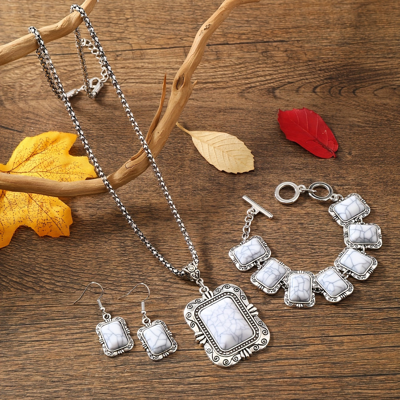 • 4-piece jewelry set with earrings, necklace, and bracelet