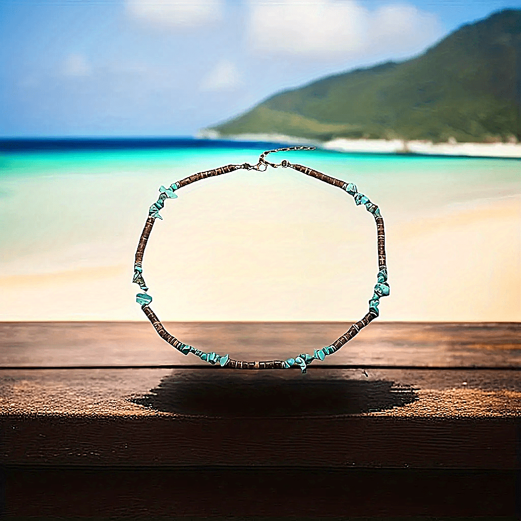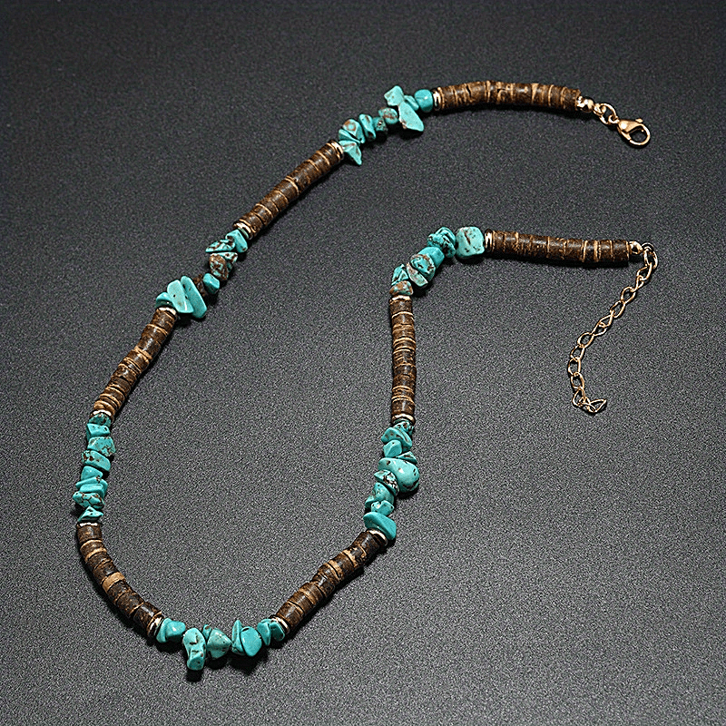 Add a touch of bohemian style with this turquoise necklace designed for men.