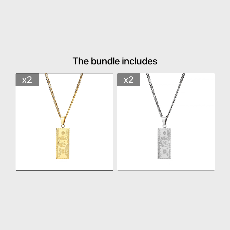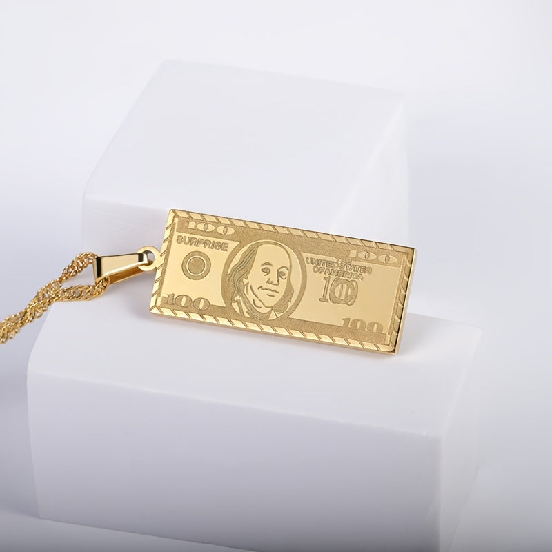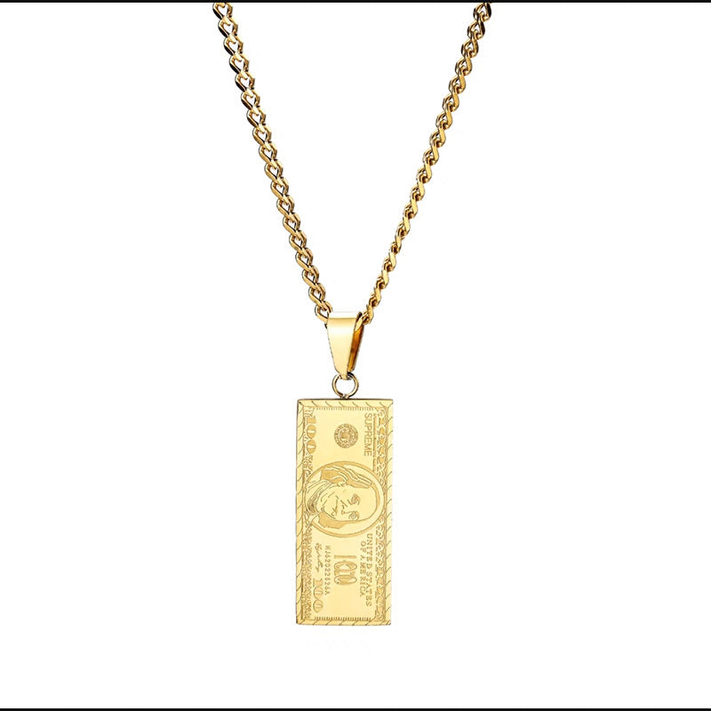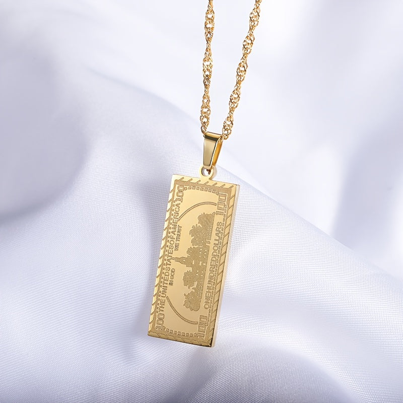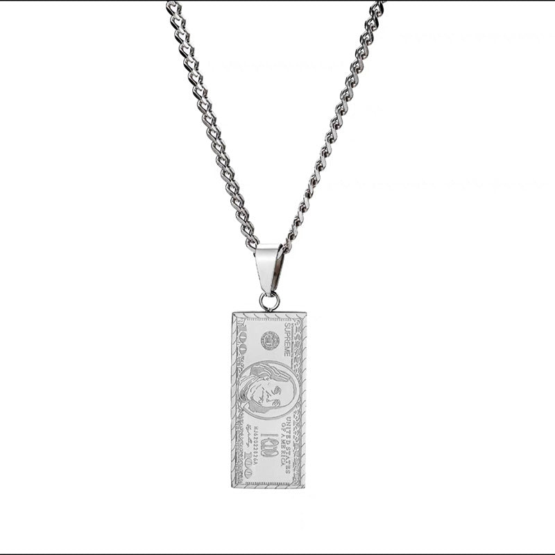 Classic Punk Stainless Steel 100 Banknote Pendant Necklace