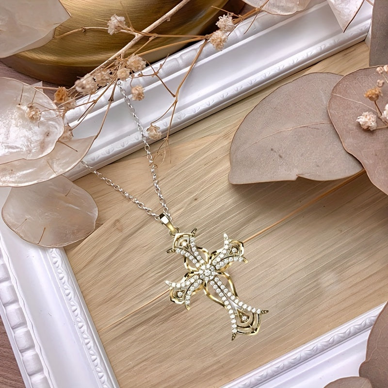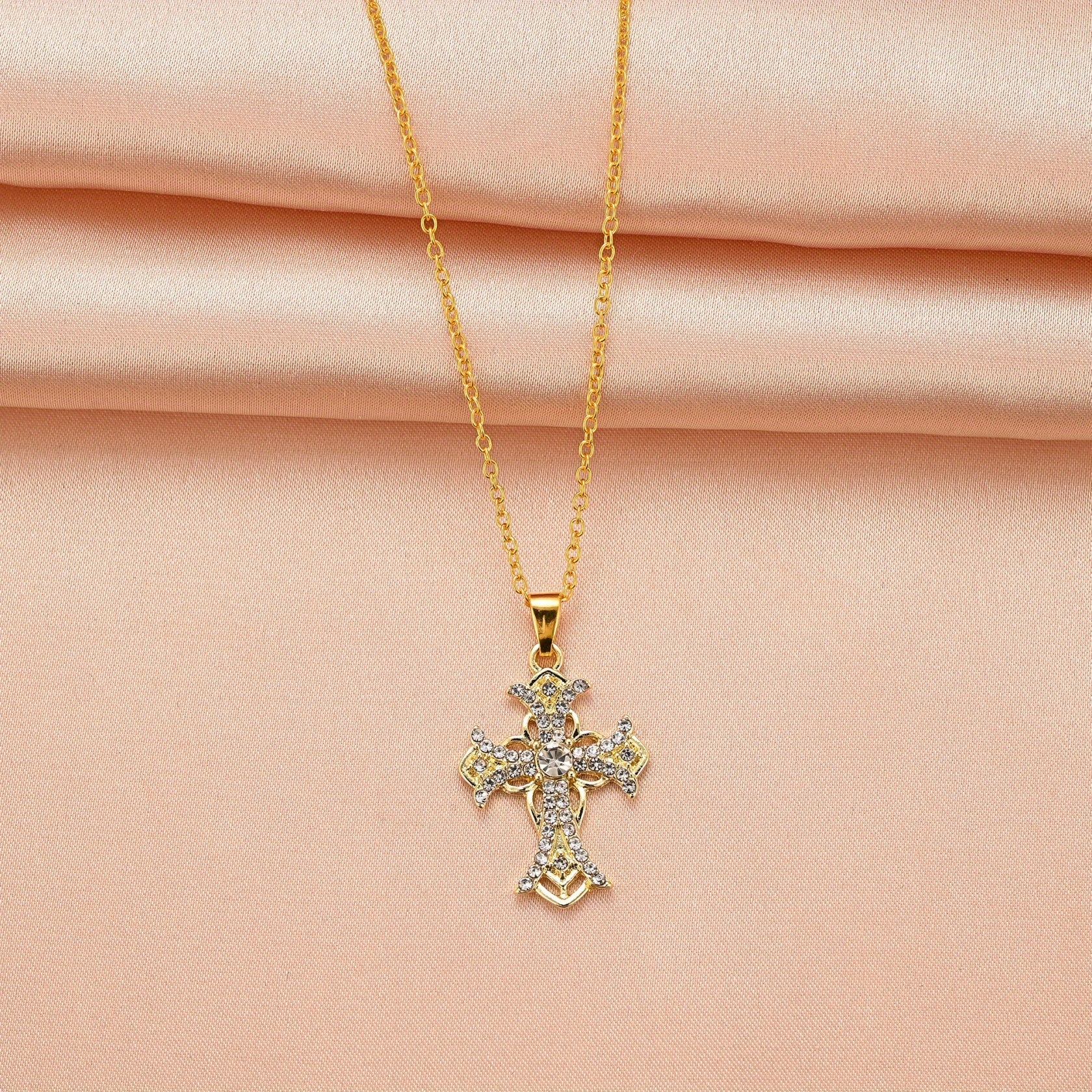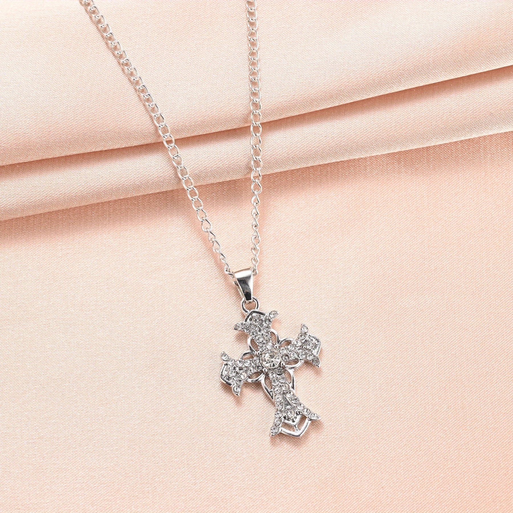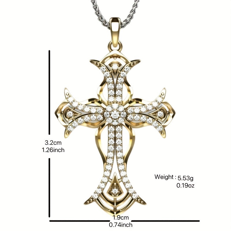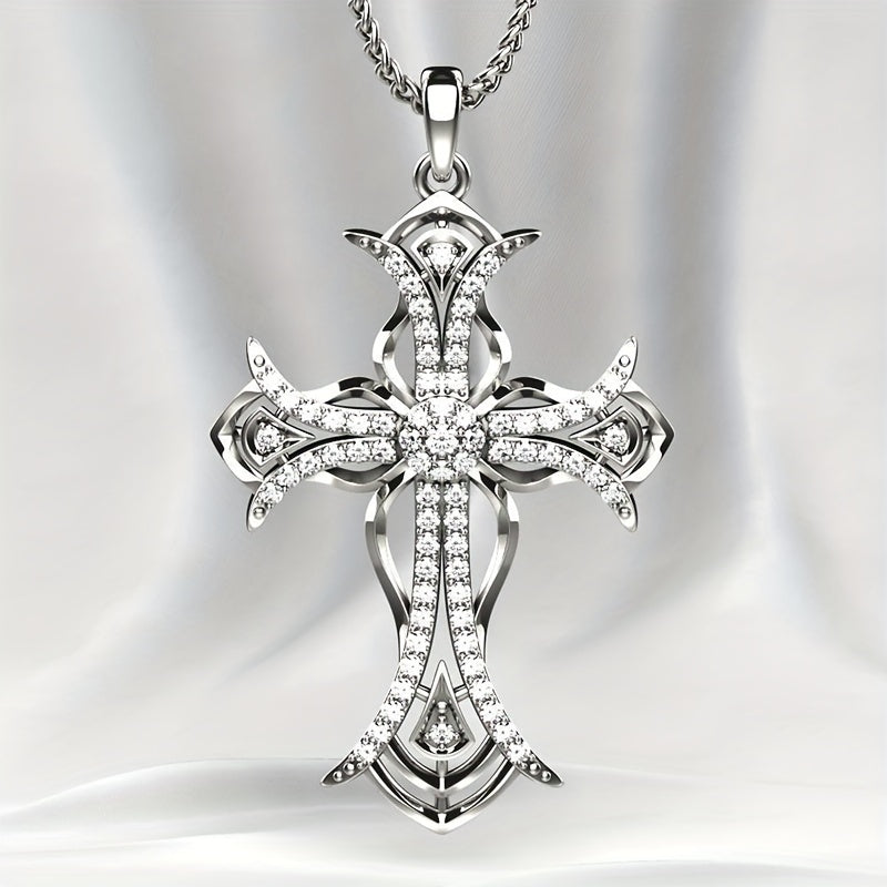 This stylish cross pendant necklace is perfect for men and women who want to display their Christian faith. The necklace features a rhinestone accent that adds a touch of sparkle and elegance.