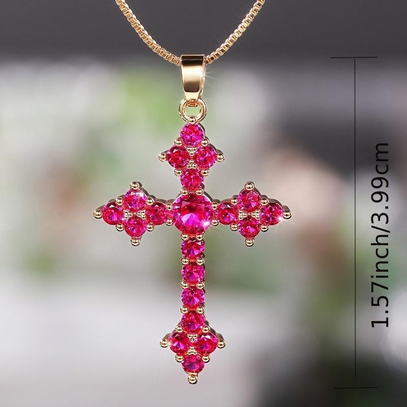 Cross Pendant Necklace with Zircon Inlays Adjustable Clavicle Chain