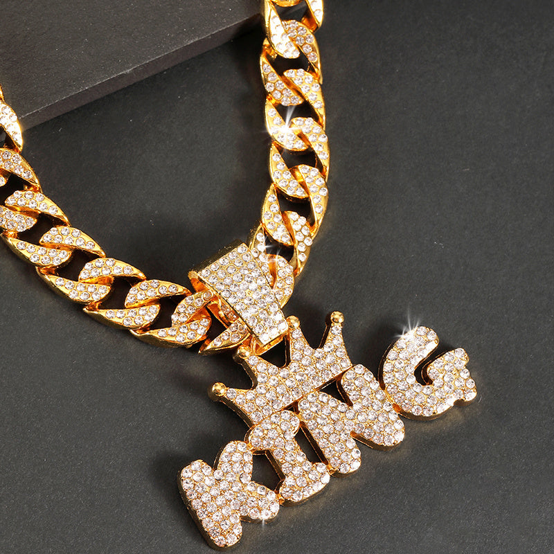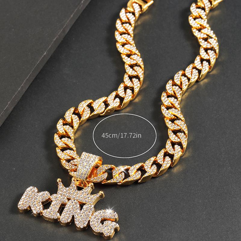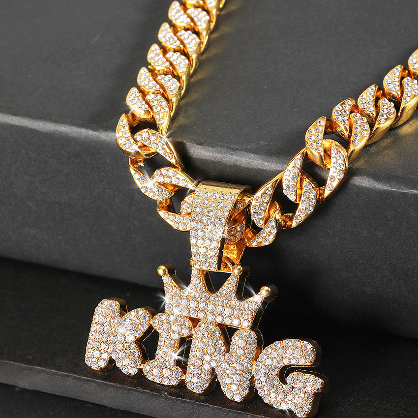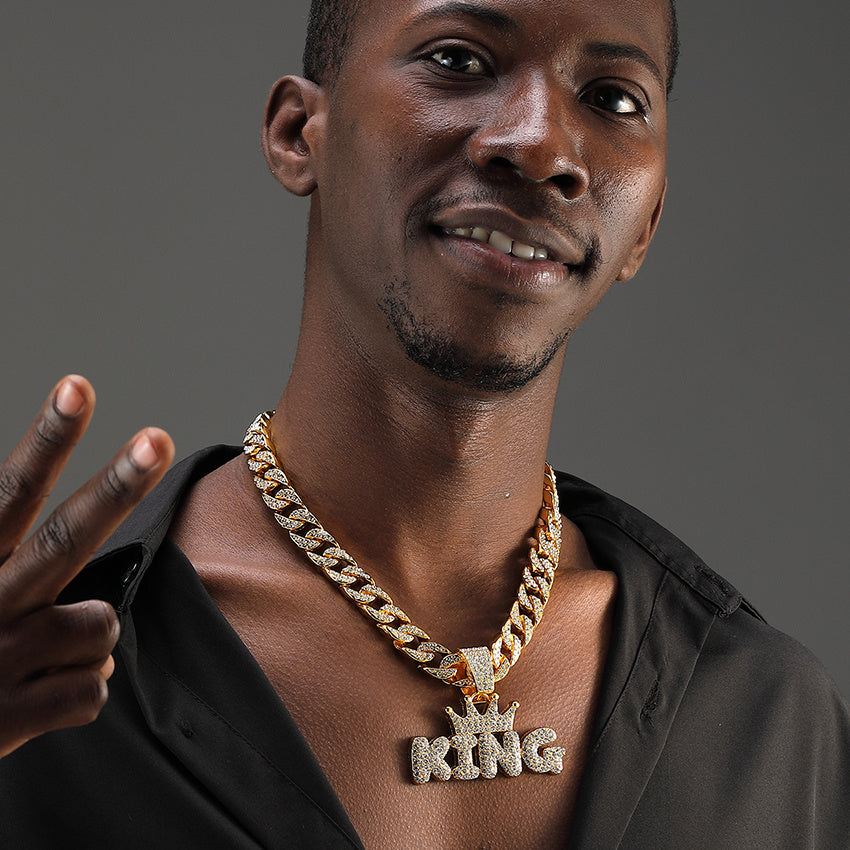 Elevate your style with this stunning Crown KING pendant necklace on a sleek Cuban chain.