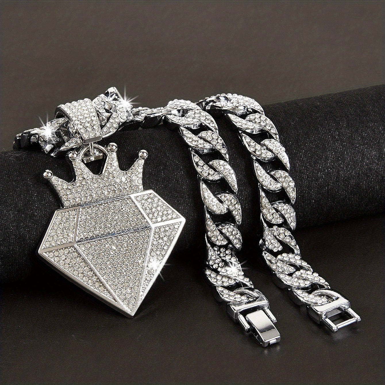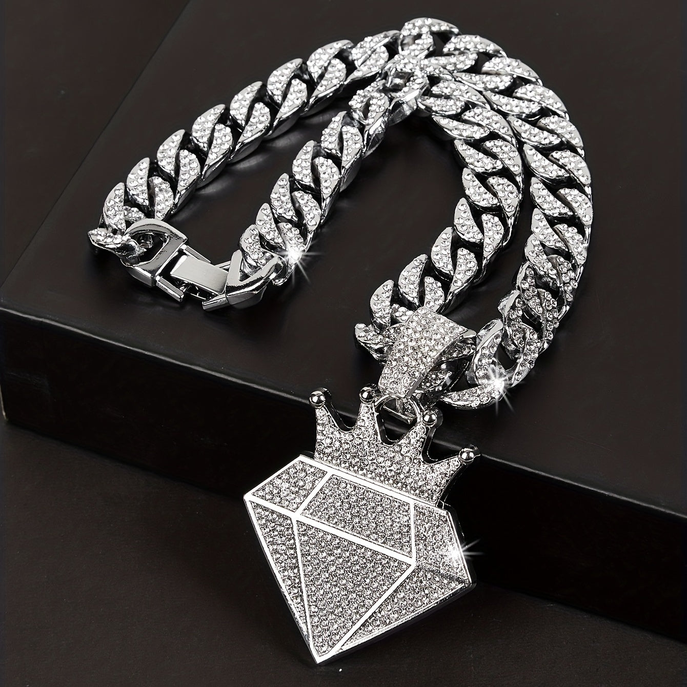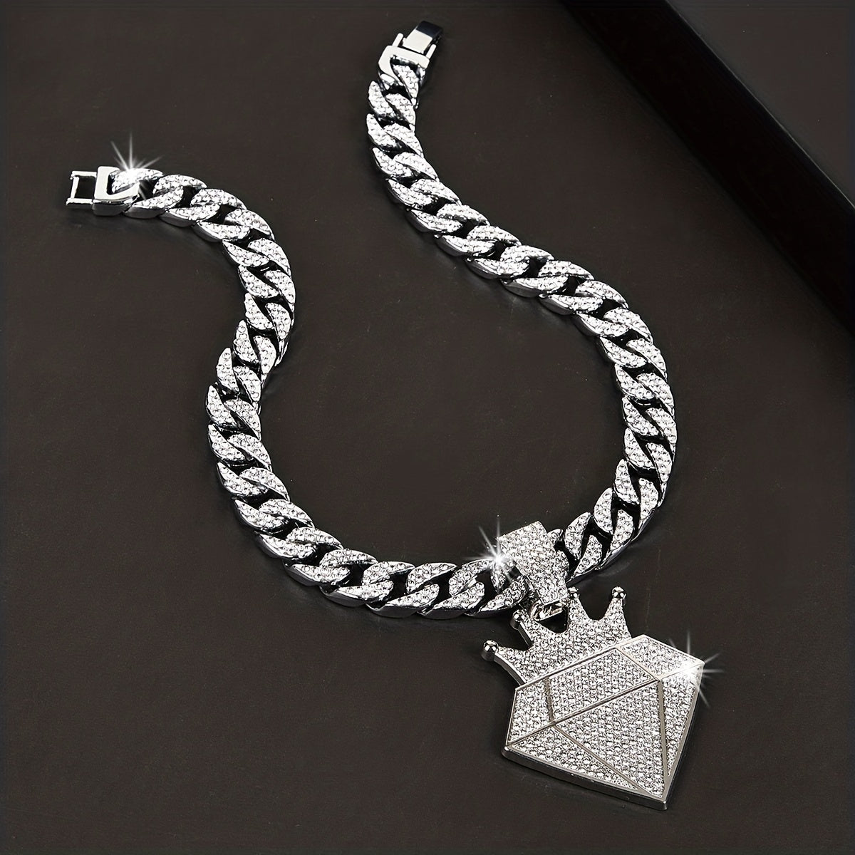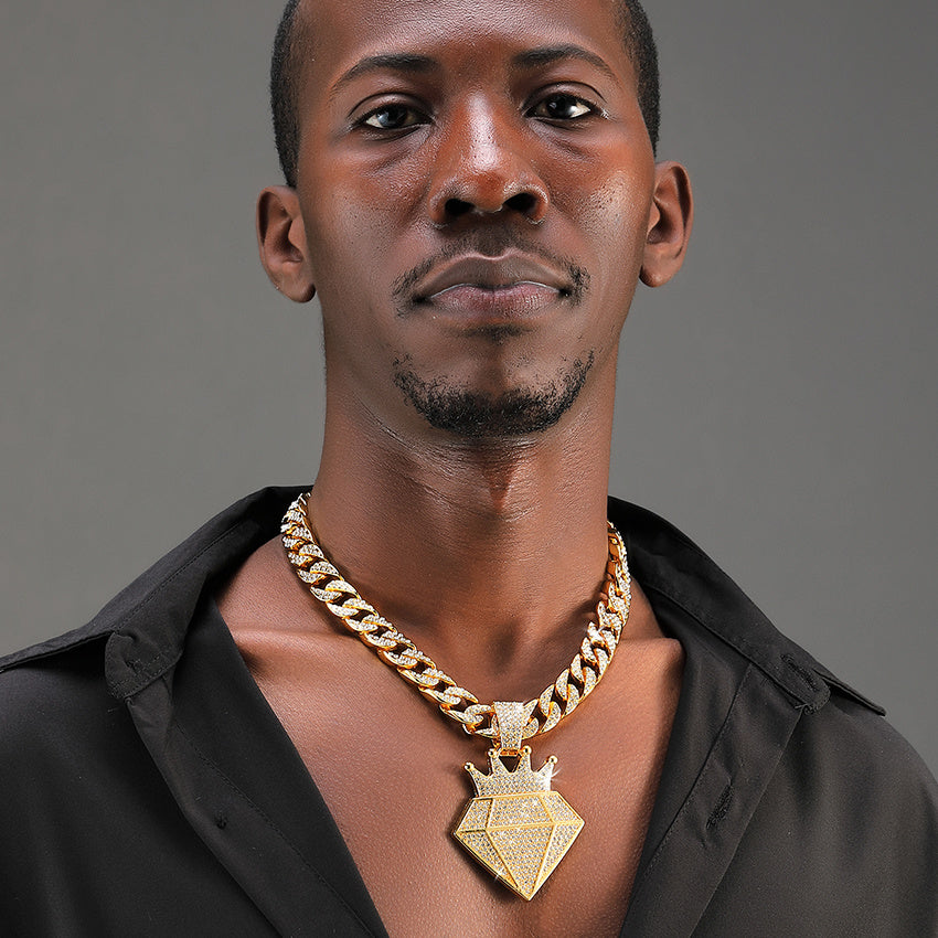 Add a touch of royalty to your look with this stylish Crown Pendant Cuban Chain Necklace.