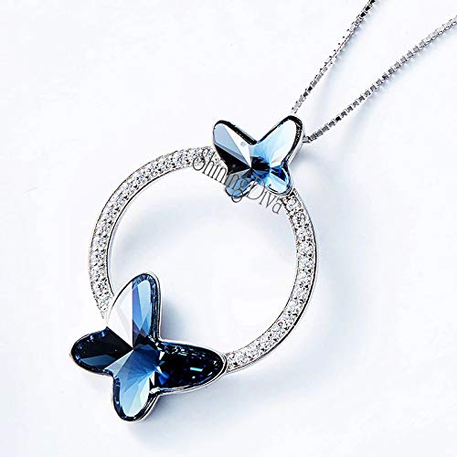 Elegant crystal butterfly pendant on a silver plated necklace chain.