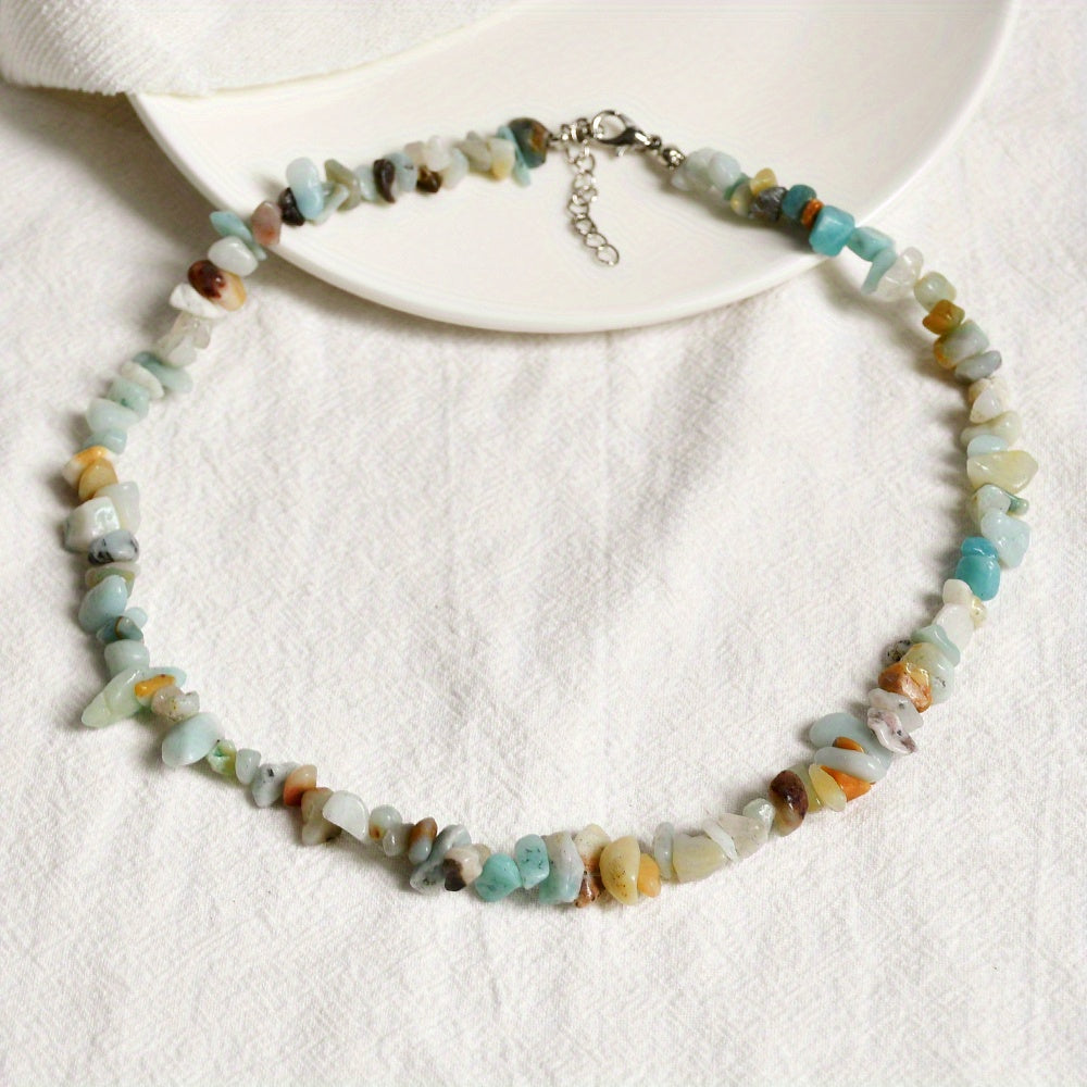 Add a touch of bohemian style to your summer beach look with this natural stone flake beaded necklace. Perfect for vacation wear.