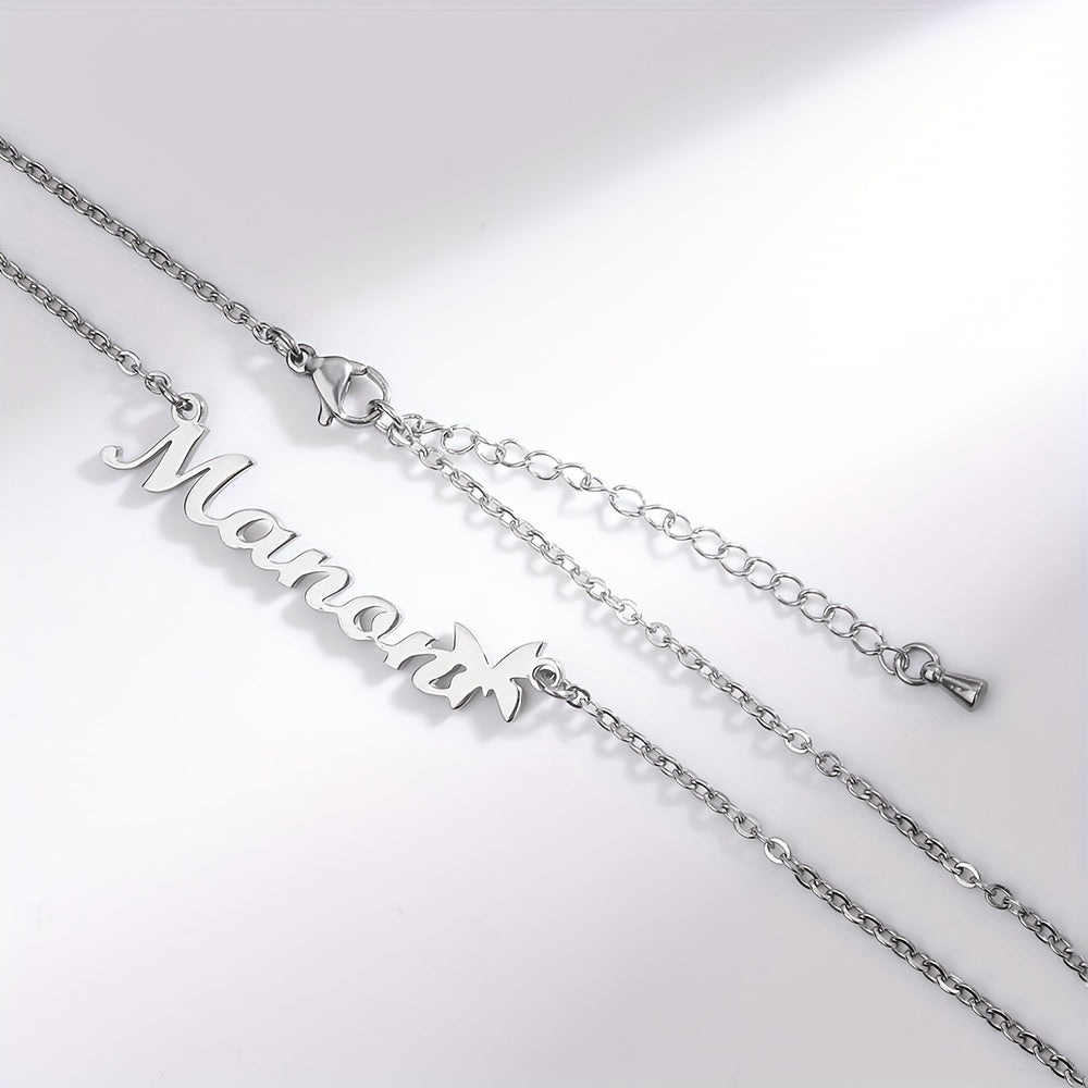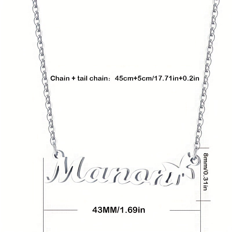 Custom Butterfly Pendant Name Necklace Titanium Steel 5 Fonts 1-10 Characters