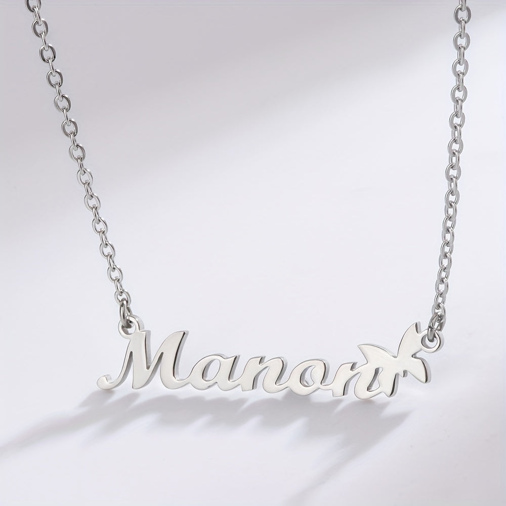 Personalized butterfly pendant necklace made from titanium steel with customizable name and font options. Ideal gift for loved ones.