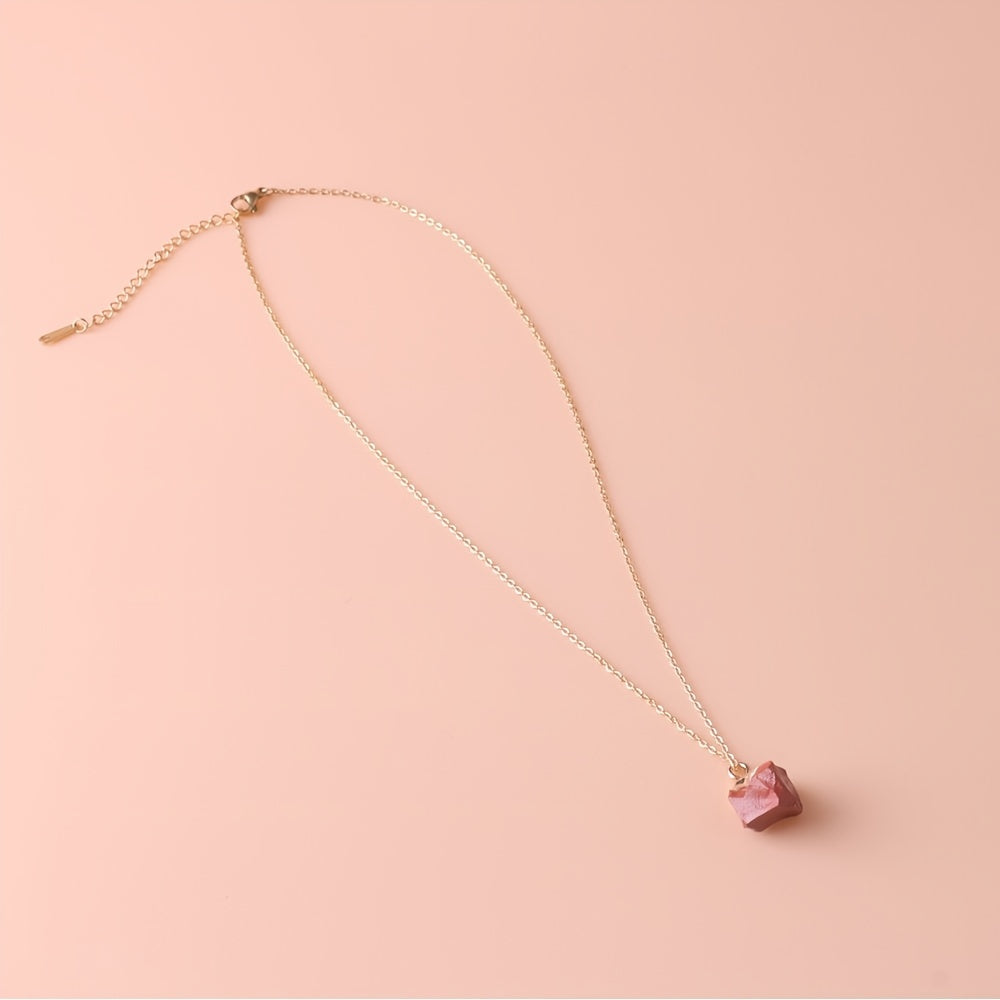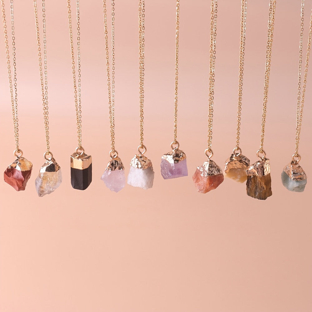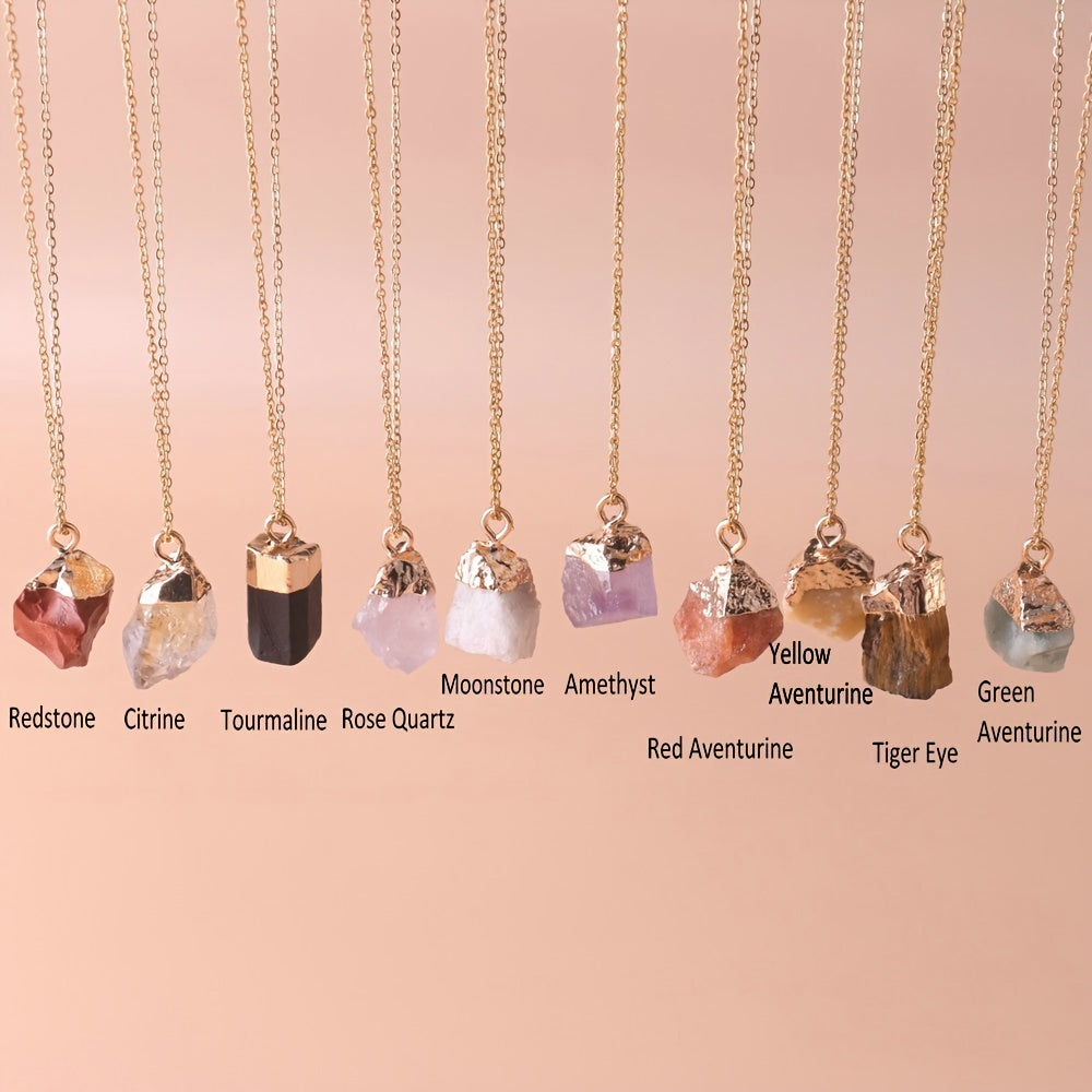 Dainty Charm Necklace Raw Stone Pendant Lucky Protection Jewelry
