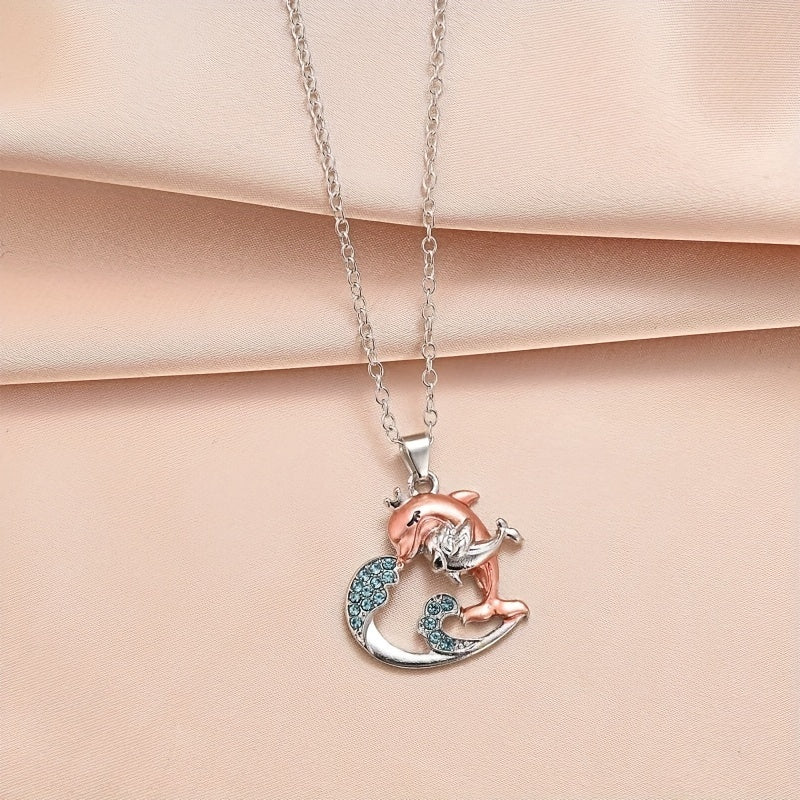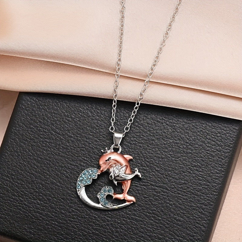 Dainty Heart Necklace Dolphin Mother Daughter Pendant Necklace