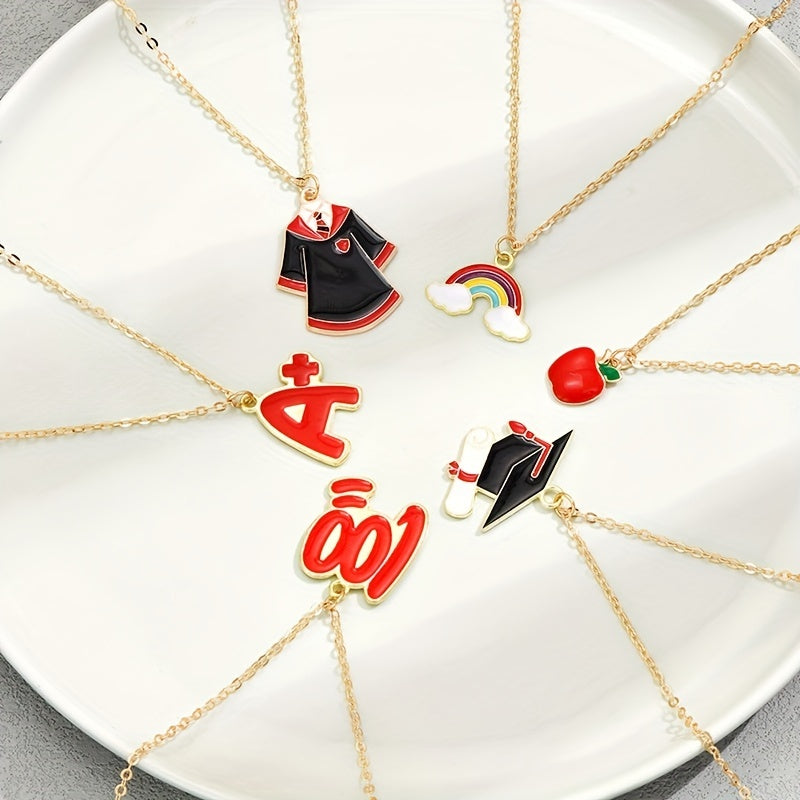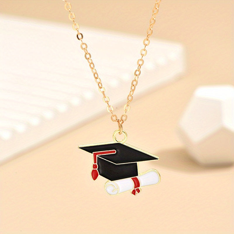 Show off your stylish and creative personality with this graduation season doctor's hat and bachelor's uniform necklace featuring a beautiful rainbow pendant.