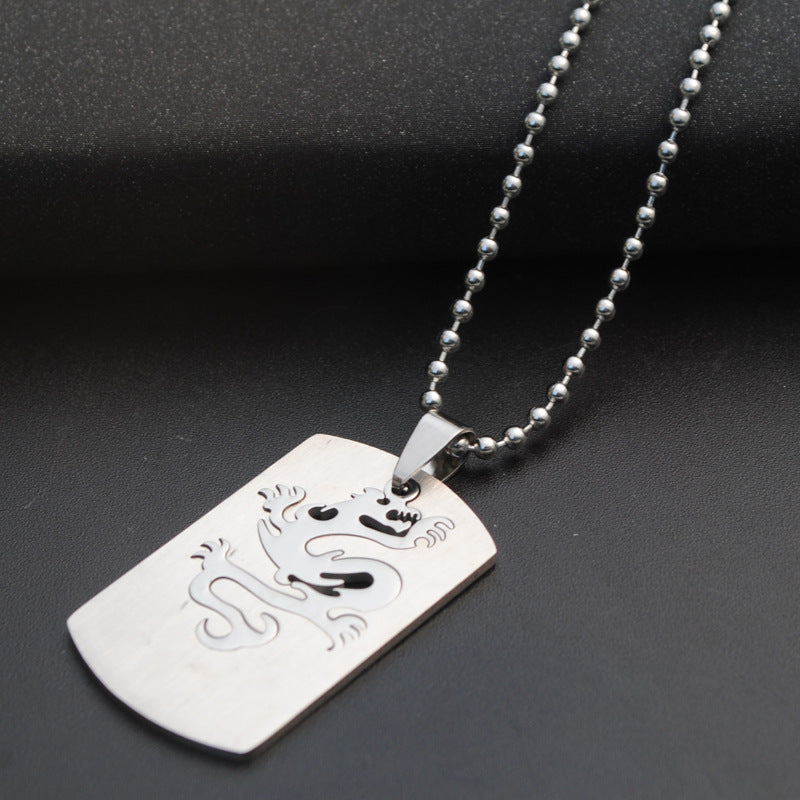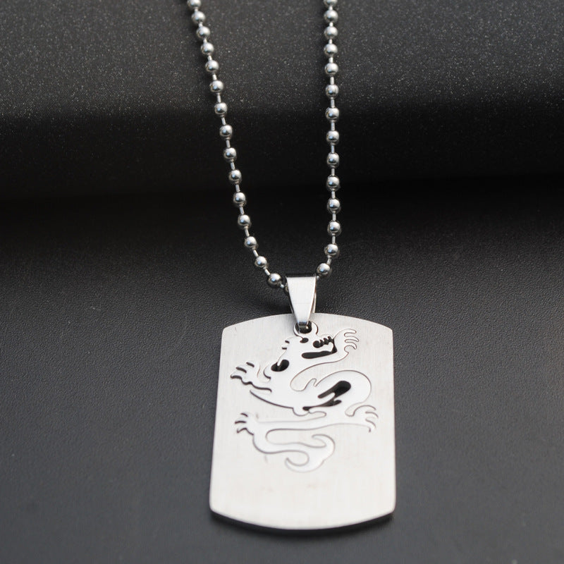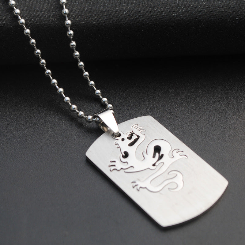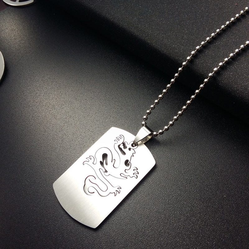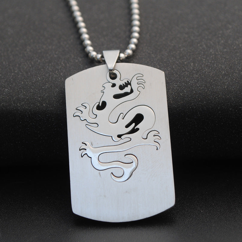 This pendant necklace features a dragon embossed design, crafted from stainless steel in a punk style.