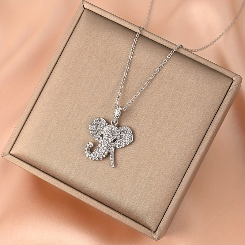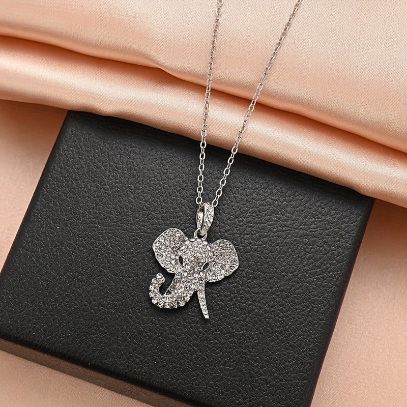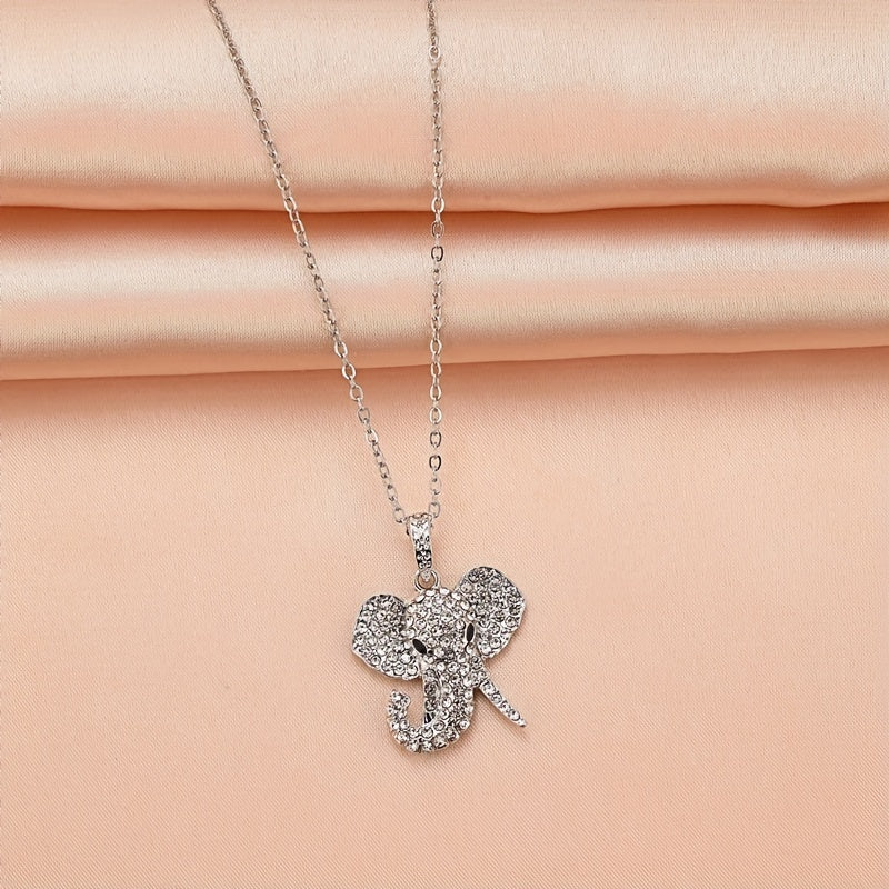 Stylish elephant pendant necklace with rhinestones, perfect for parties. Makes a great gift for Thanksgiving, Christmas, or birthdays.