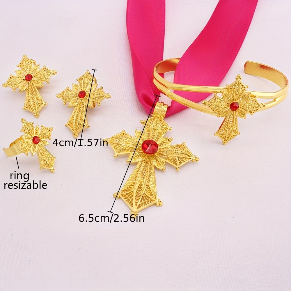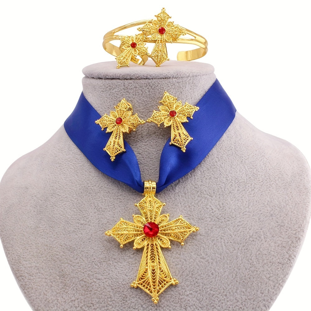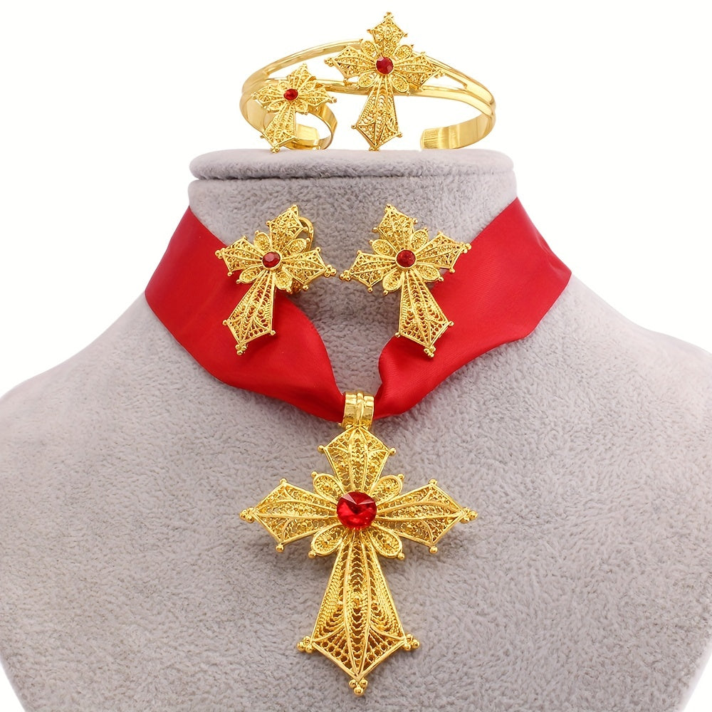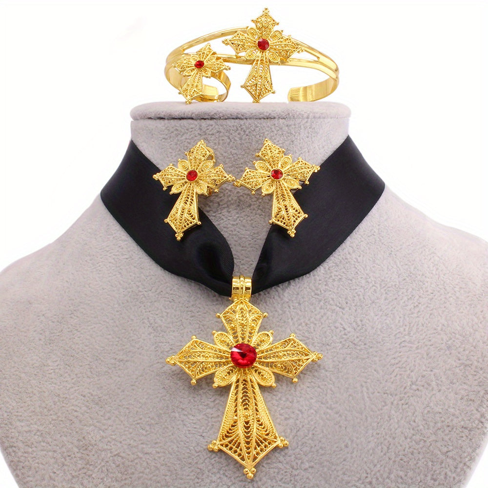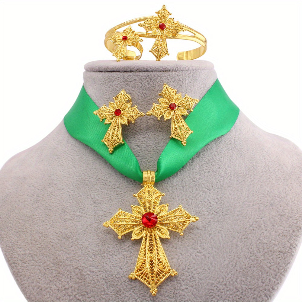 Stunning African Ethiopian jewelry set with necklace, earrings, ring, and bangle. Perfect for weddings and special occasions.