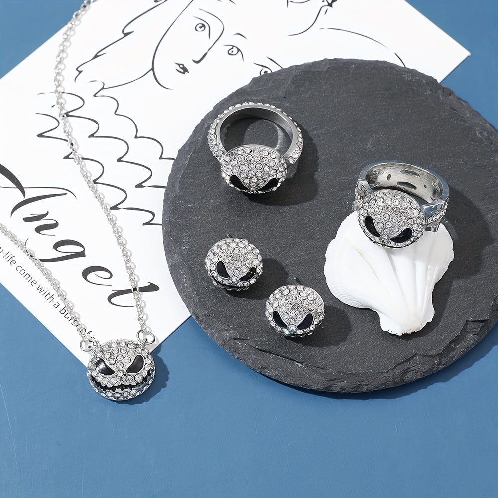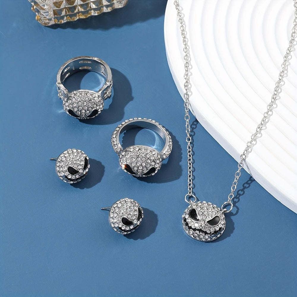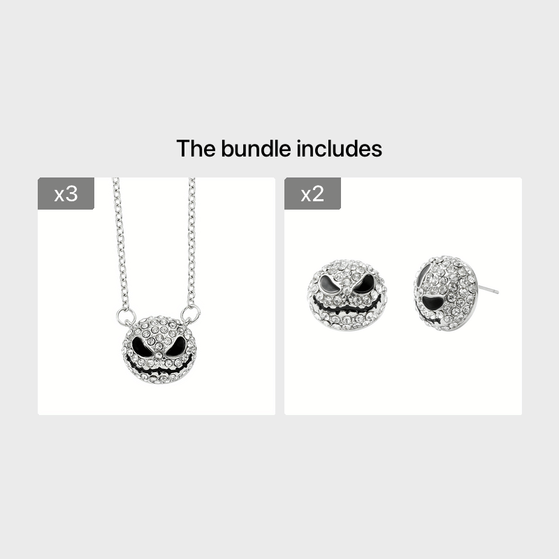 Add a touch of devilish charm to your holiday look with these creative skull encrusted earrings and pendant set.