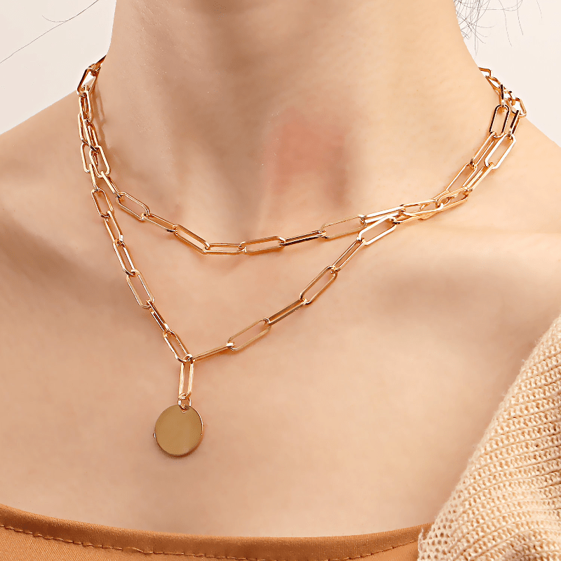 Make a bold statement with this unique and edgy round piece double paperback necklace choker. Perfect for adding a touch of personality to your outfit.