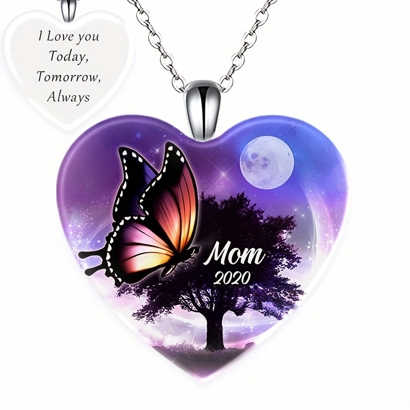 This stunning necklace features a butterfly design with a heart-shaped crystal pendant, making it a perfect accessory for Christmas, holiday parties, or birthdays.
