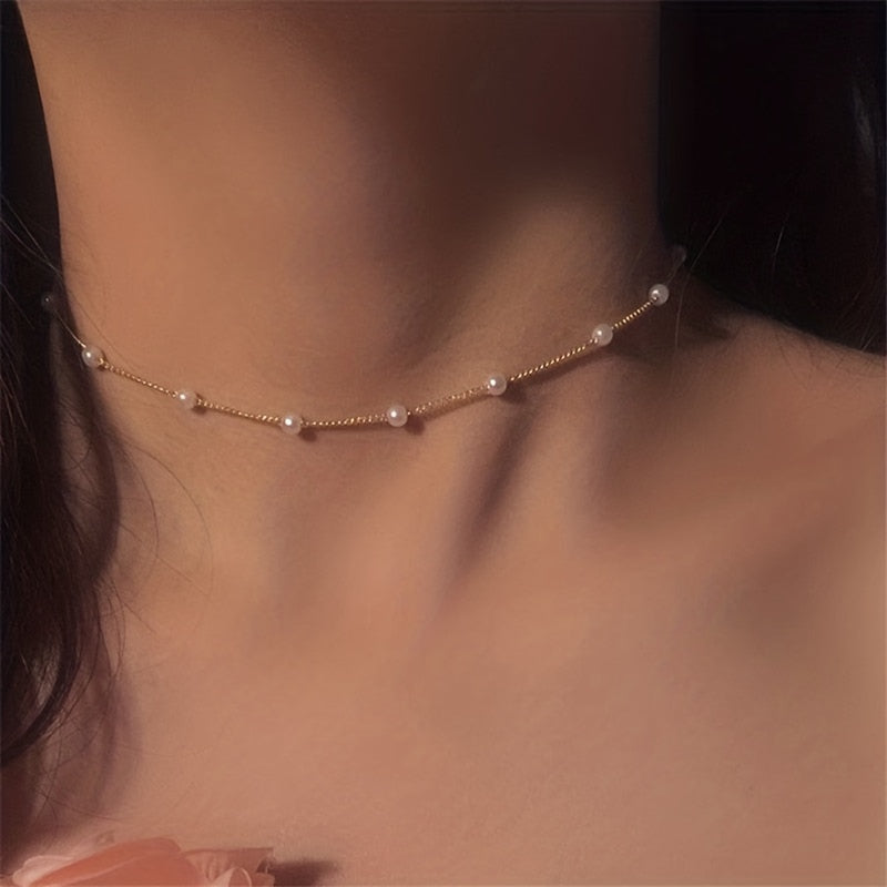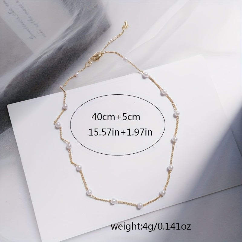 Enhance your style with this delicate faux pearl collarbone chain necklace. Perfect for any occasion, this charming piece makes a great gift for women.
