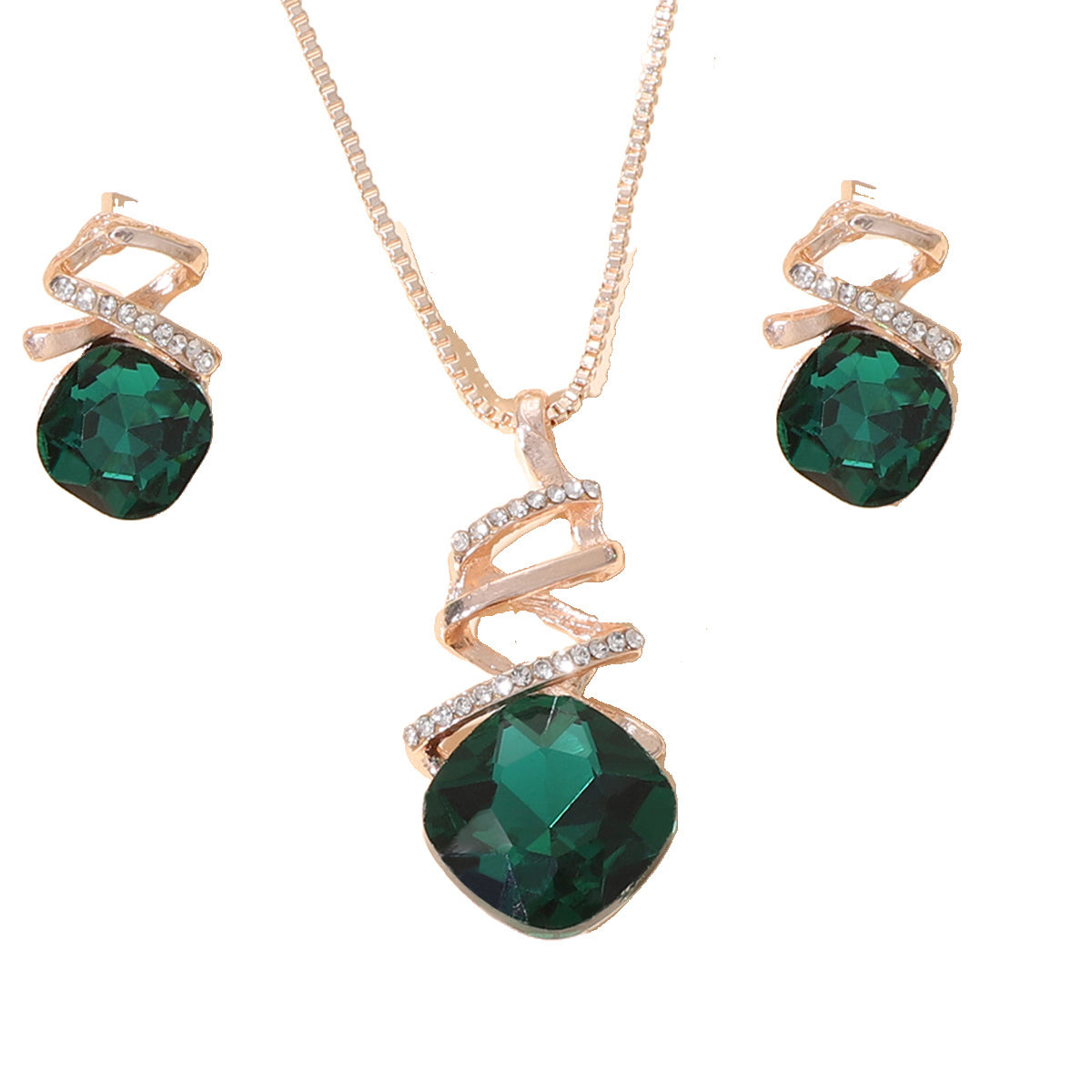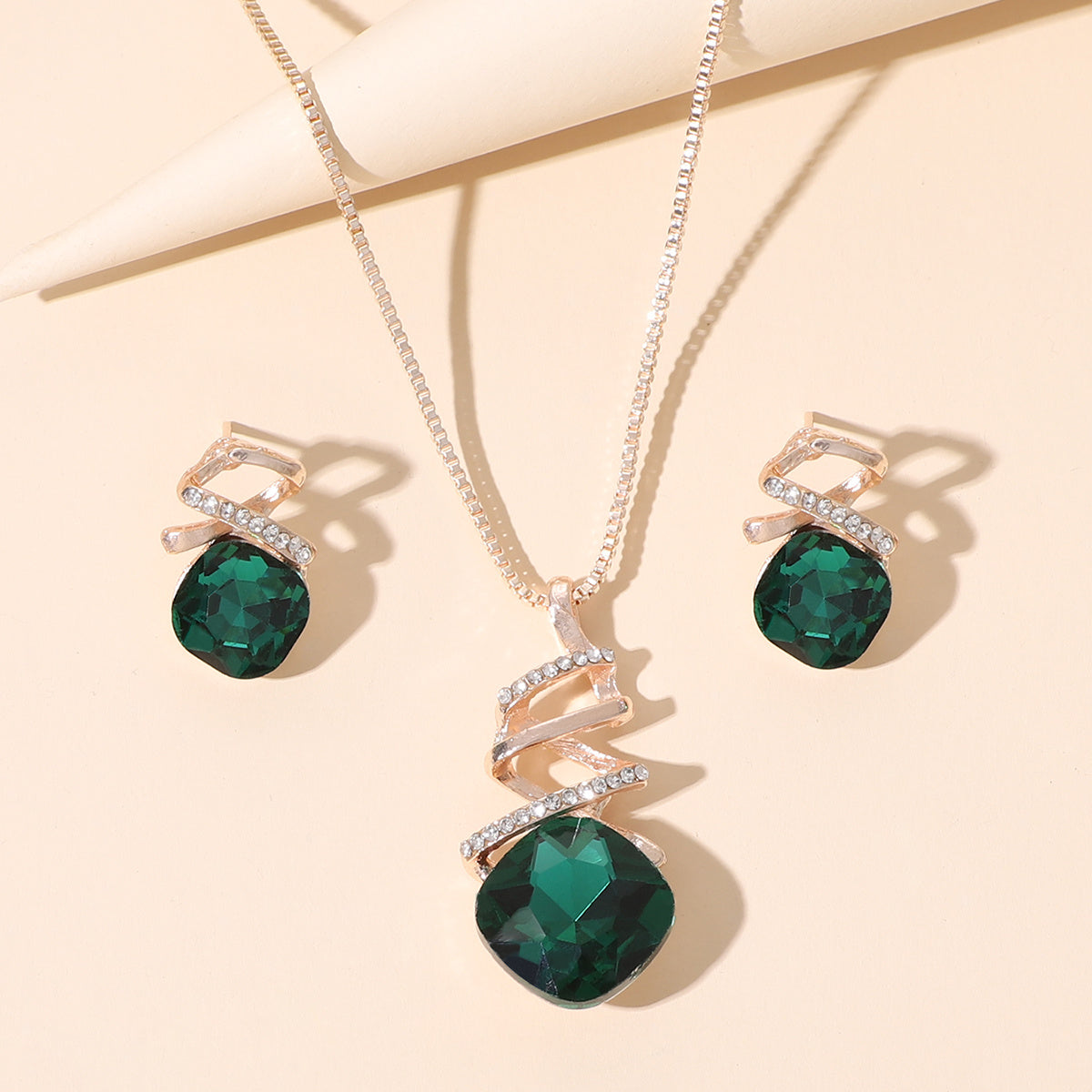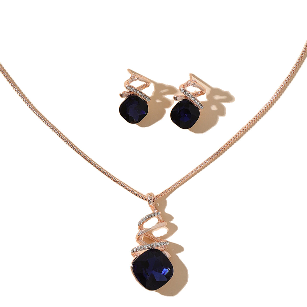 Elegant geometric crystal jewelry set including a pendant necklace and stud earrings, perfect for weddings, special occasions, or everyday wear.