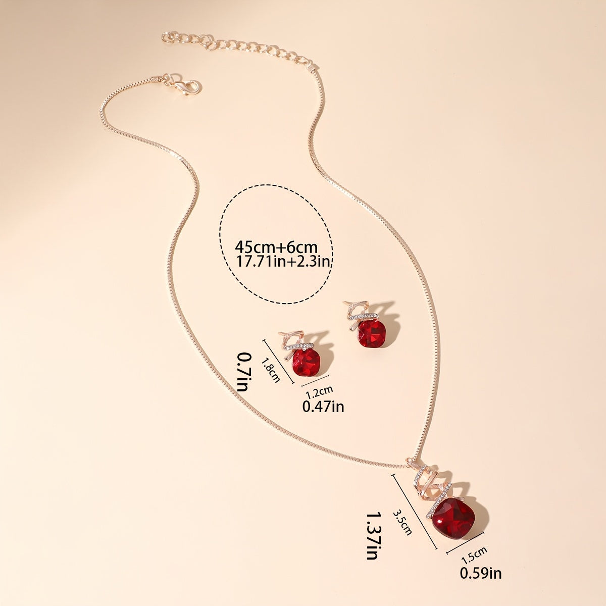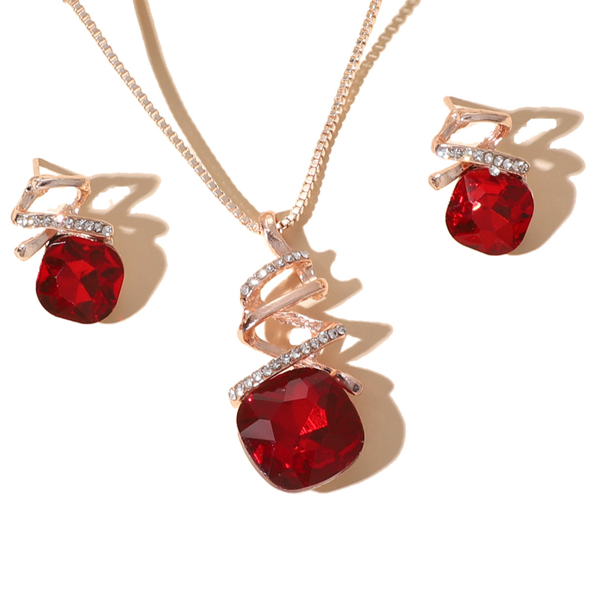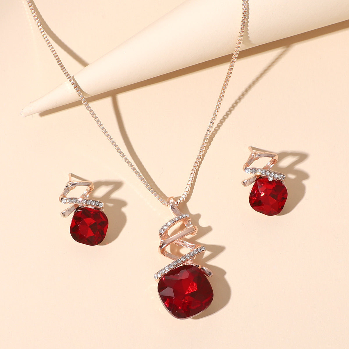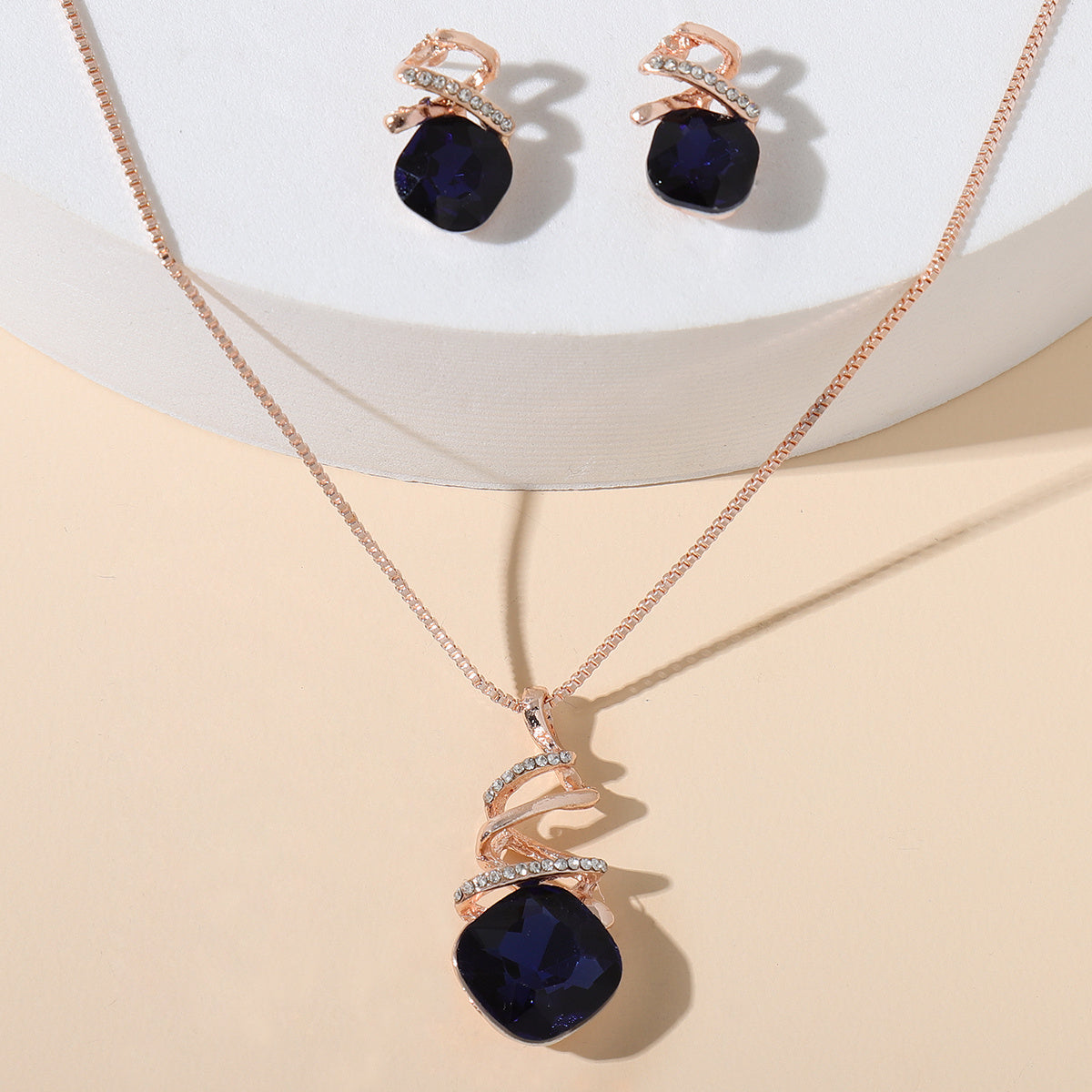 Elegant geometric crystal jewelry set including a pendant necklace and stud earrings, perfect for weddings, special occasions, or everyday wear.