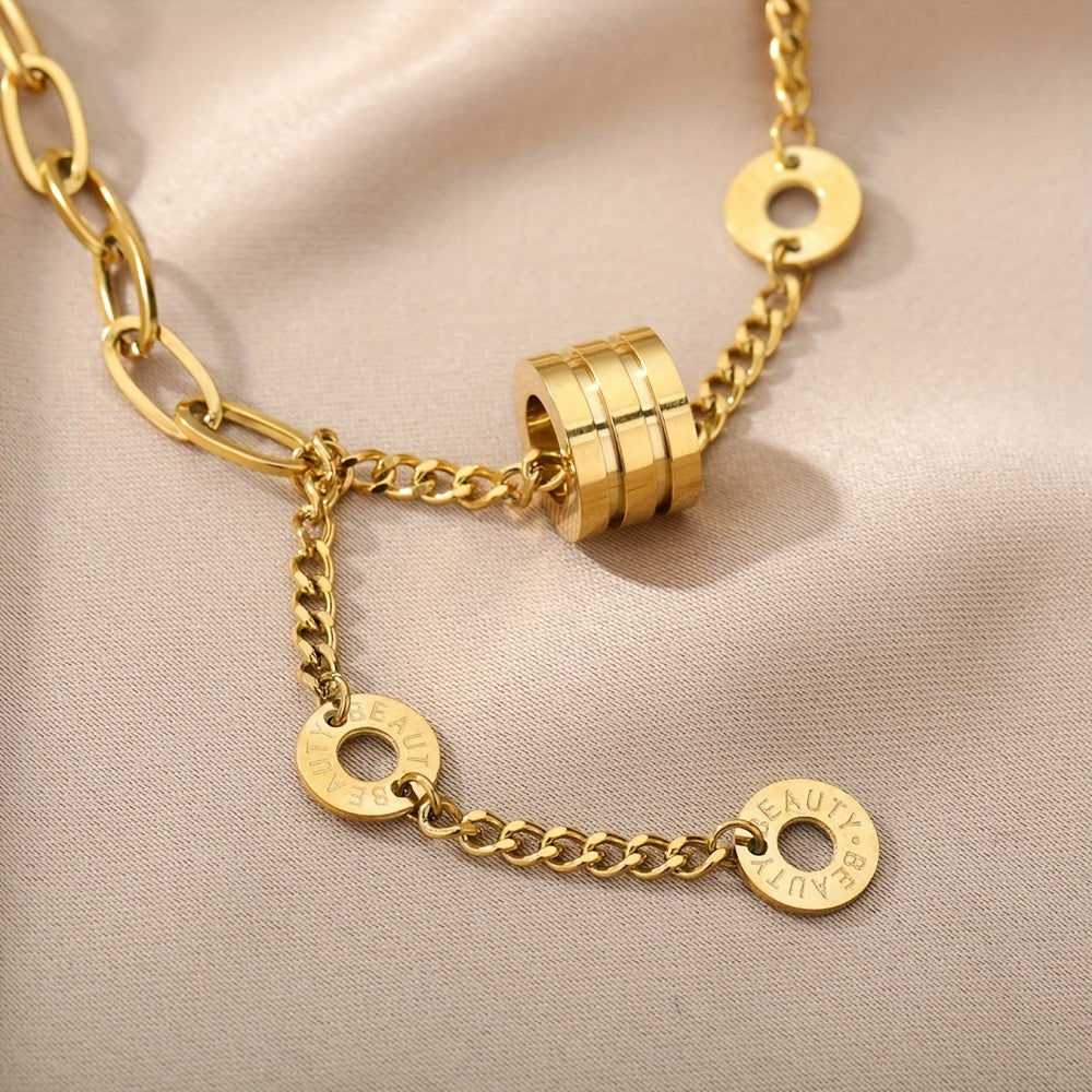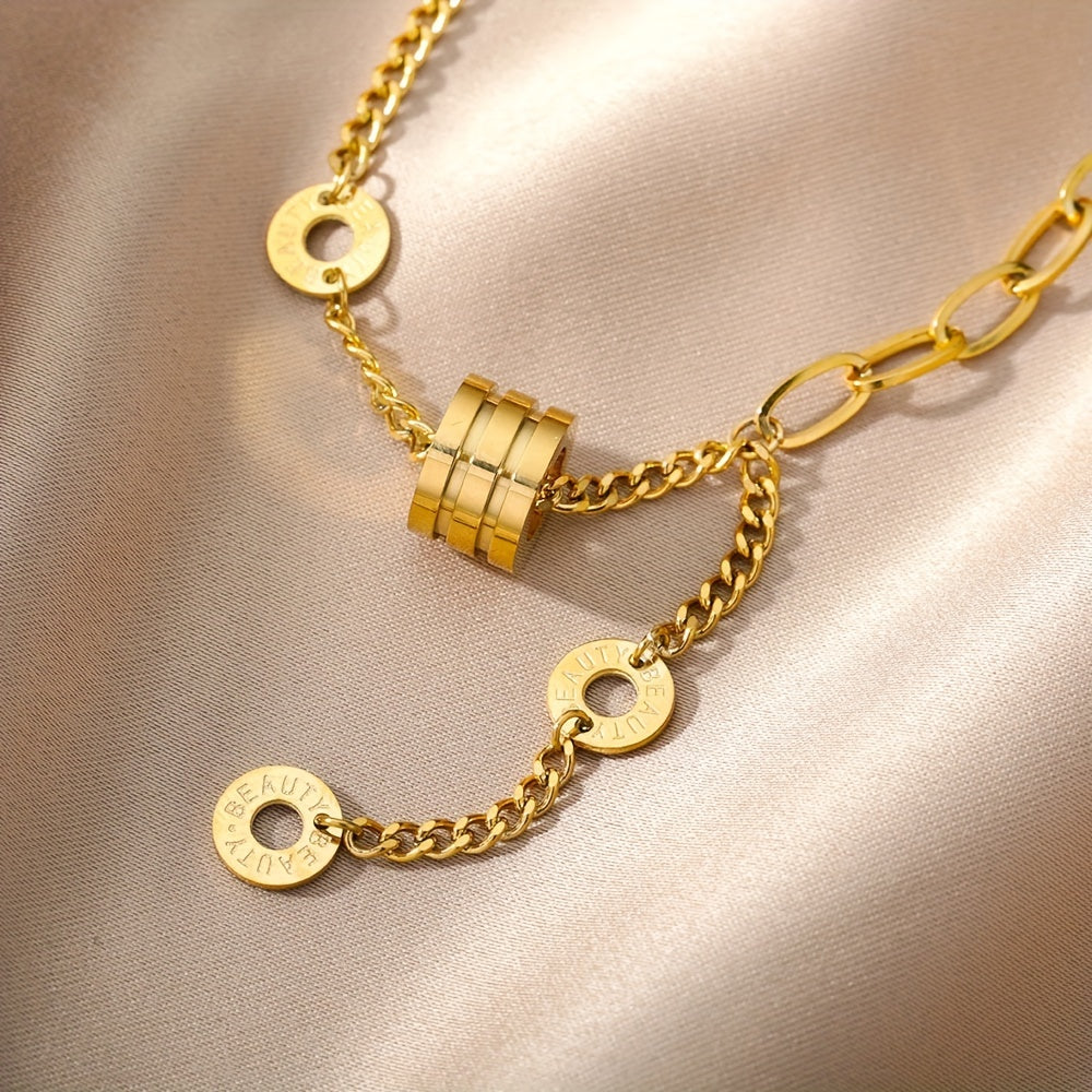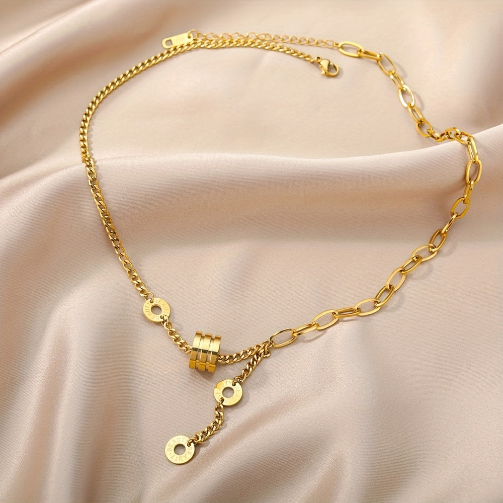 Add a touch of modern elegance to your outfit with this geometric cylinder pendant necklace. Featuring a stylish multilayer design, this necklace is perfect for women and girls.
