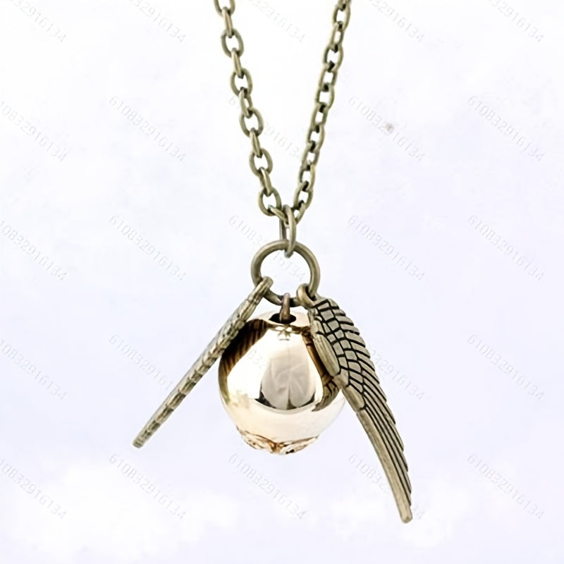 Elegant pendant necklace featuring a golden flying thief design.