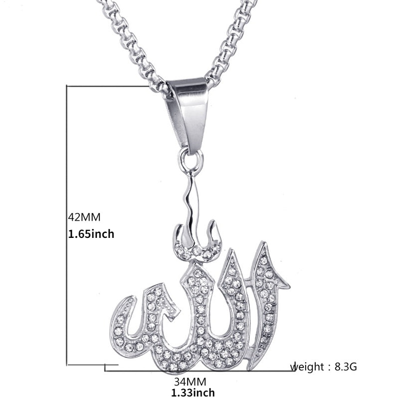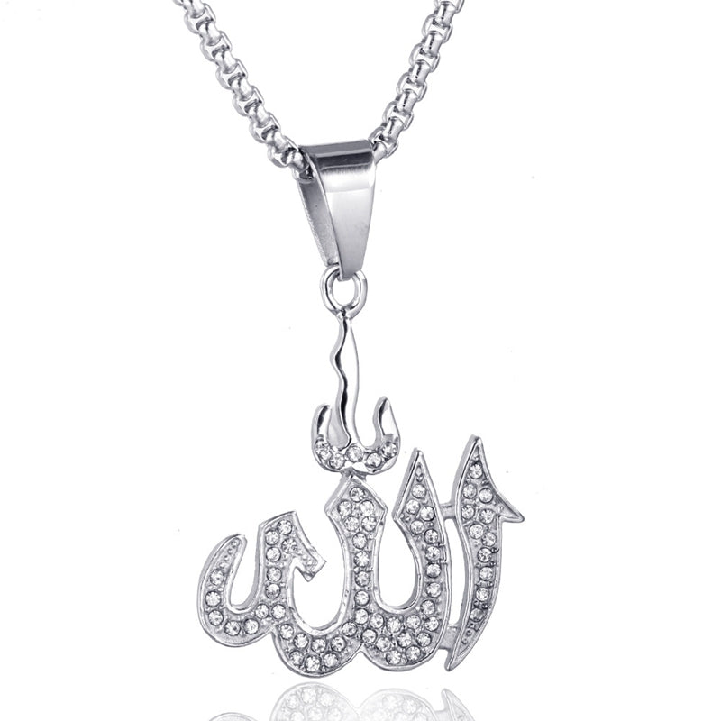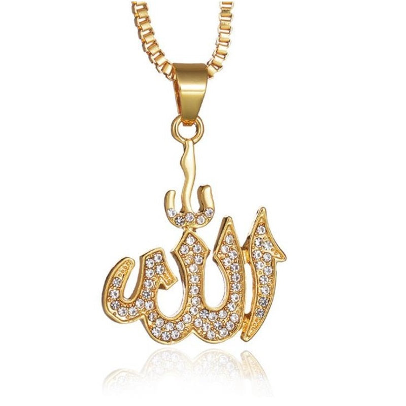Add a touch of bling to your outfit with this golden plated pendant necklace featuring an artificial diamond-encrusted religious letter symbol. Perfect for hip hop style and unique jewelry lovers.
