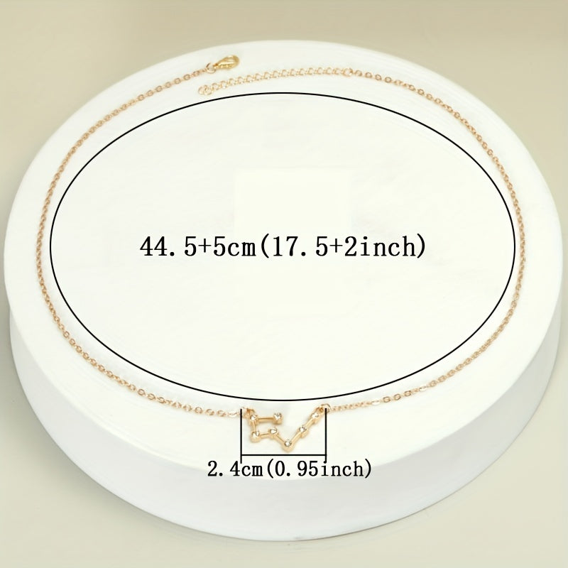 Golden Plated Zodiac Necklace with Rhinestone Star Map Pendant