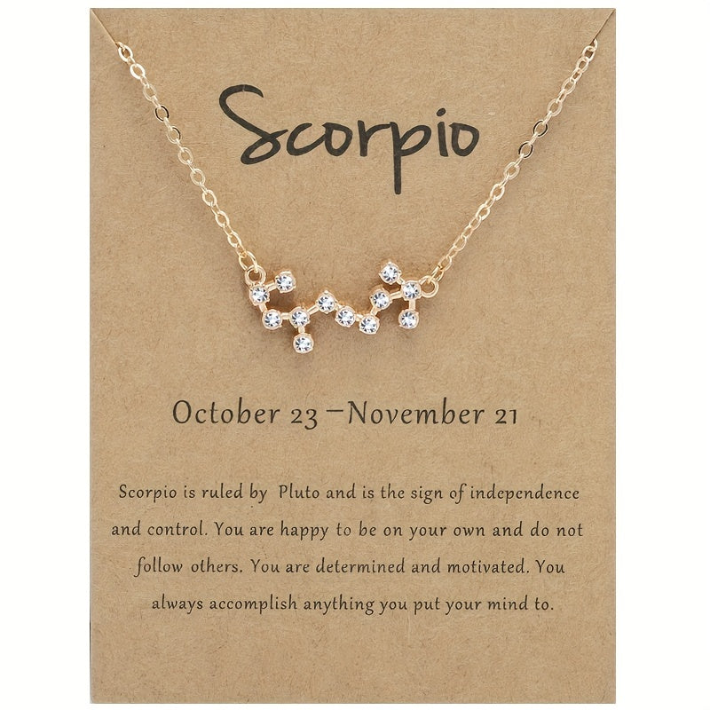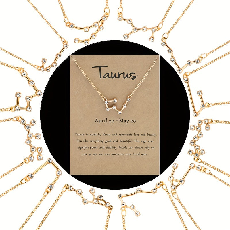This stunning necklace features 12 zodiac signs with a rhinestone star map pendant. Each pendant represents a unique constellation for a stylish and meaningful accessory.