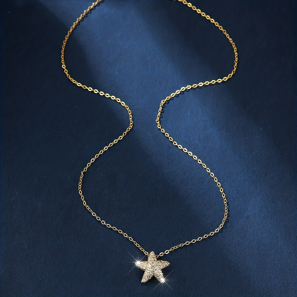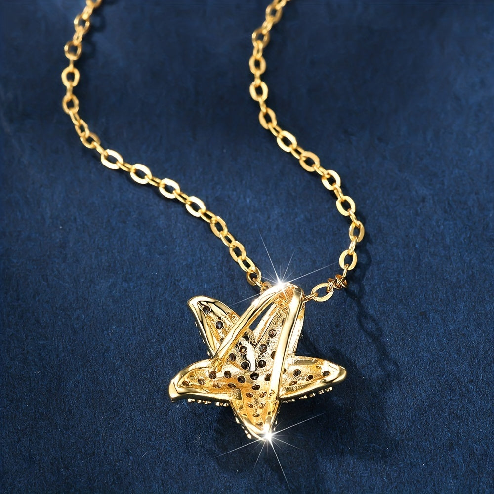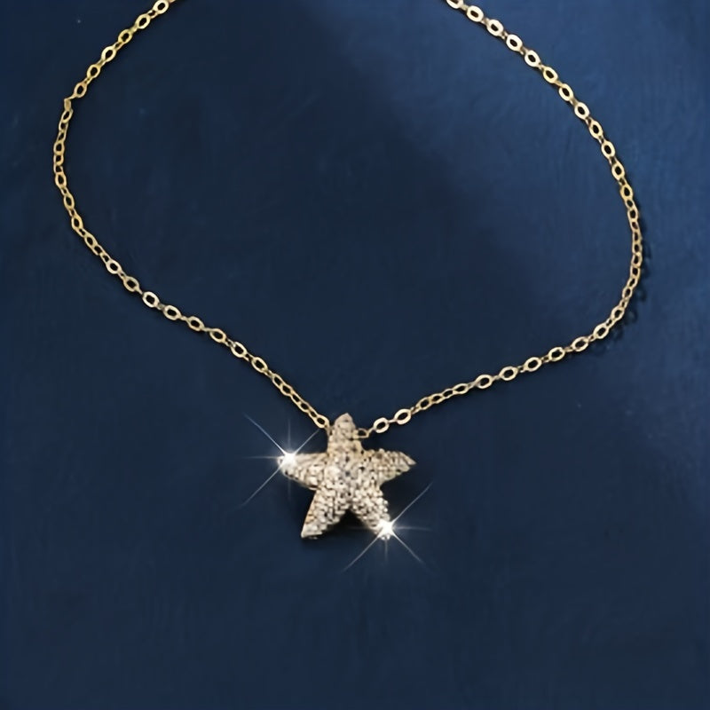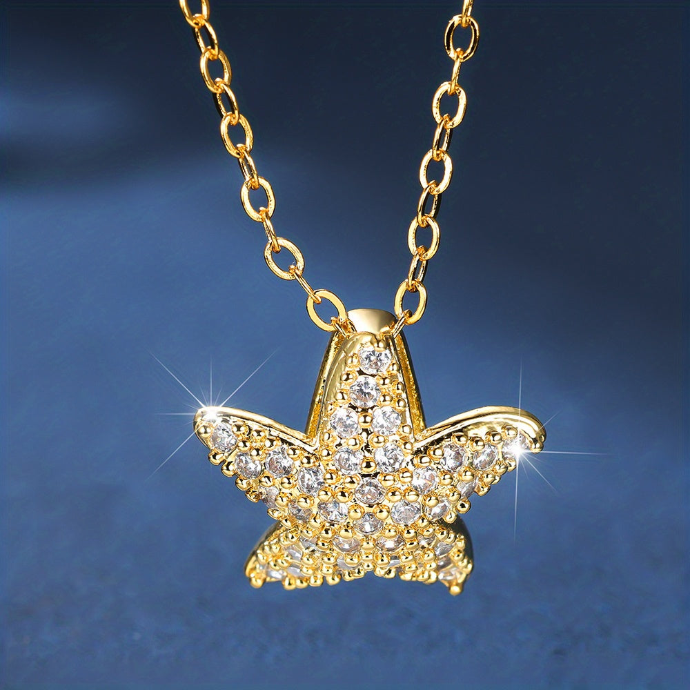Golden Starfish Pendant Necklace Beach Vacation Holiday Jewelry