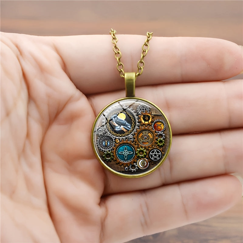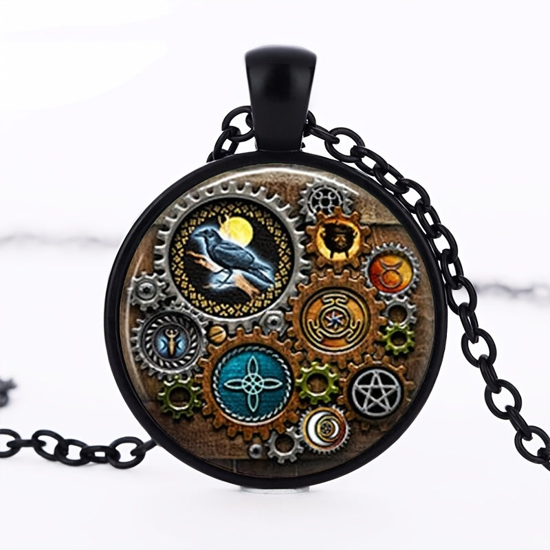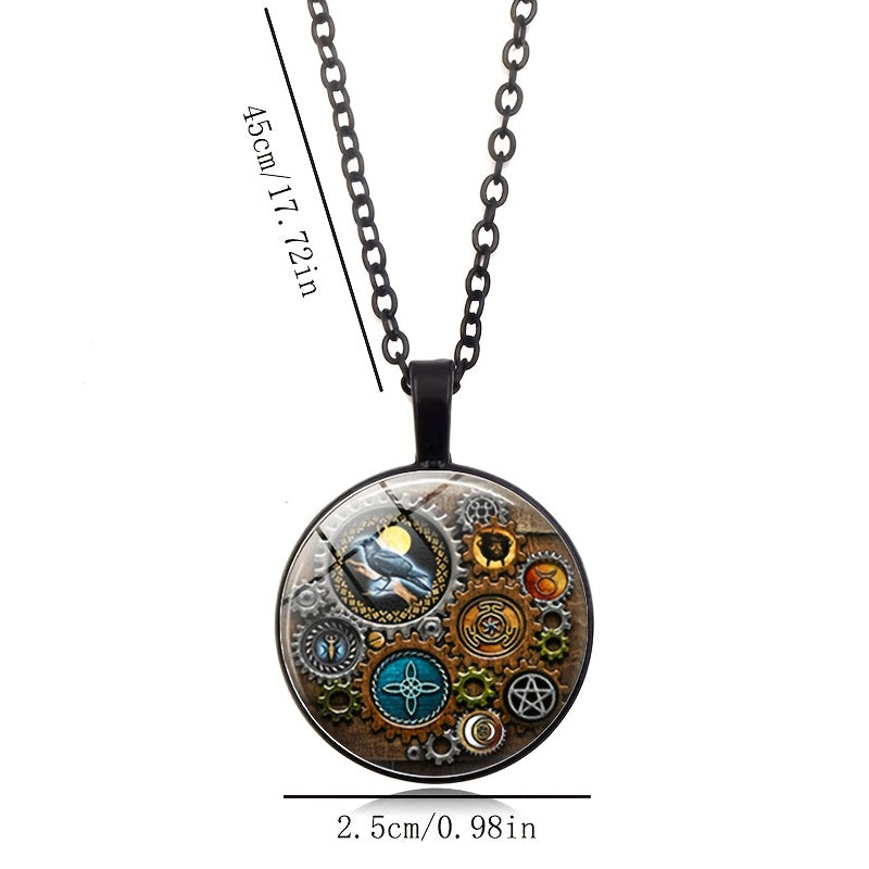 This pendant necklace features a Gothic Witch Steampunk design, perfect for adding a touch of mystery and style to your look. Made with high-quality glass, this necklace is a unique and eye-catching accessory.
