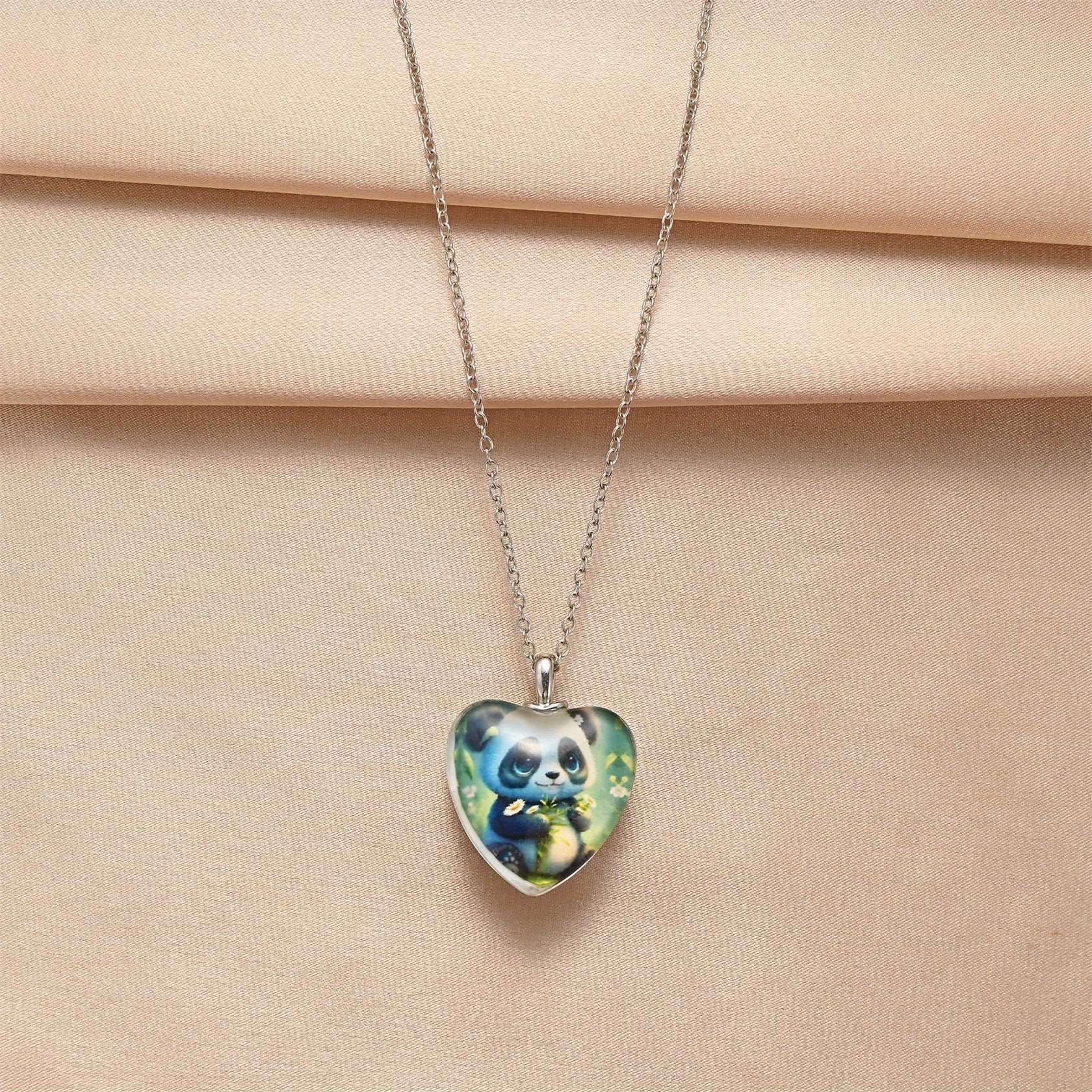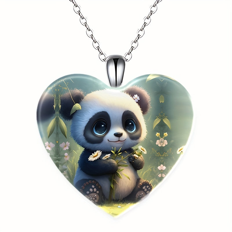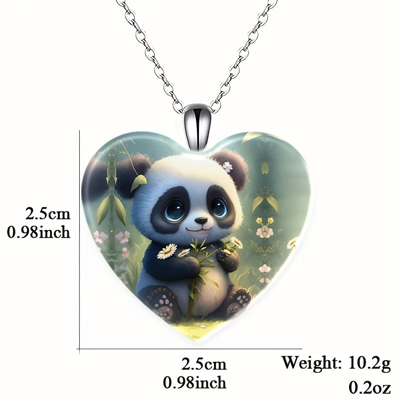 Add a touch of charm to any outfit with this heart-shaped crystal pendant featuring a playful panda design. Perfect as a gift for birthdays, Christmas, Thanksgiving, or any special occasion.