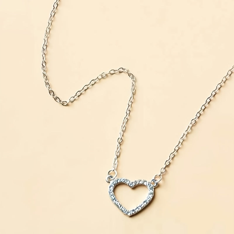 This dainty chain necklace features a hollow heart shape pendant, perfect for expressing your love. Ideal for weddings, anniversaries, and promises.