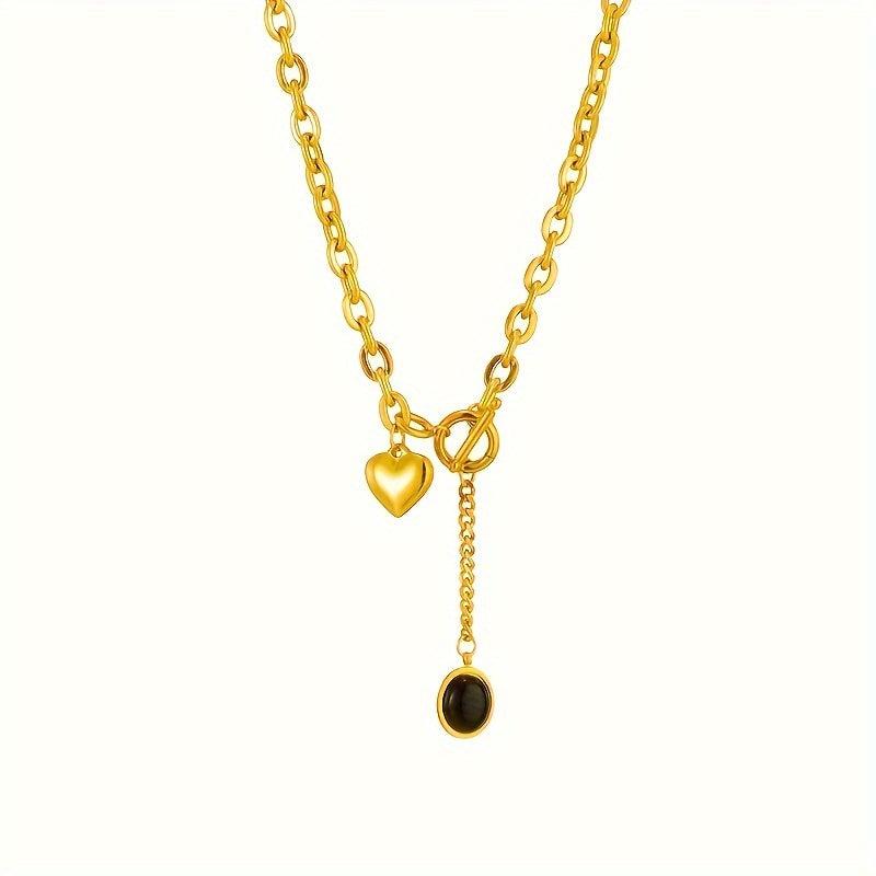 This stainless steel necklace features a golden heart shape design with a retro style, perfect for both men and women to wear at parties and special occasions.