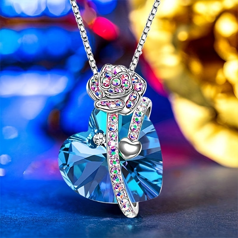 Add a touch of elegance and style to your outfit with this fashionable heart shaped crystal necklace. Perfect for banquets and special occasions.