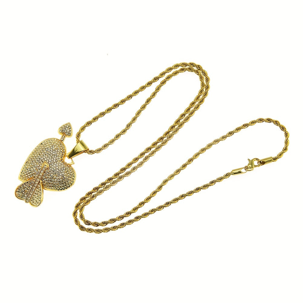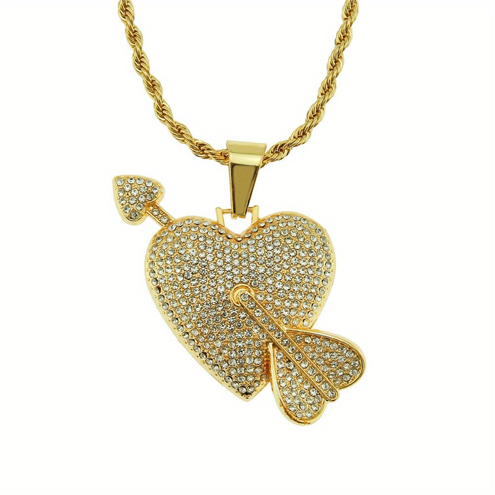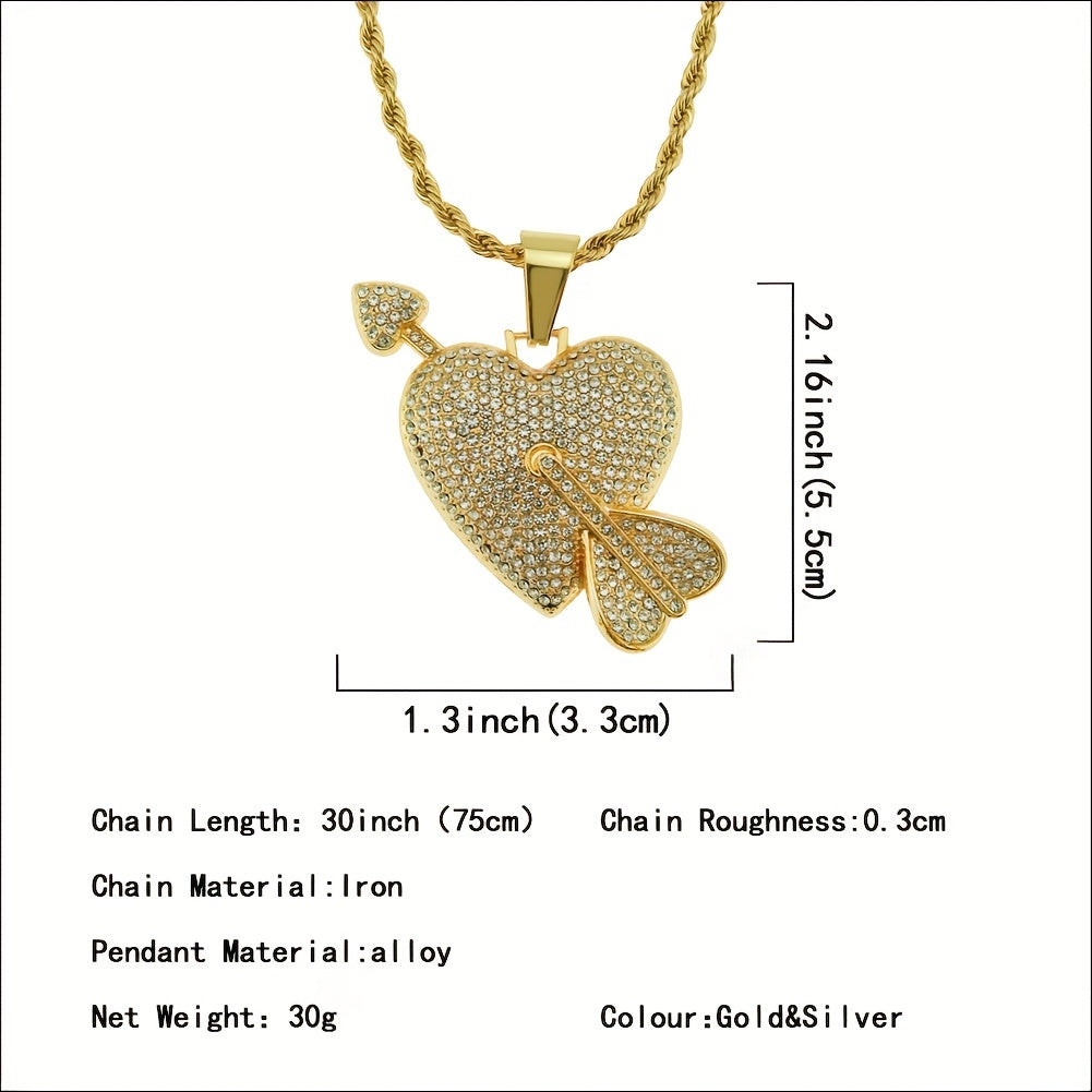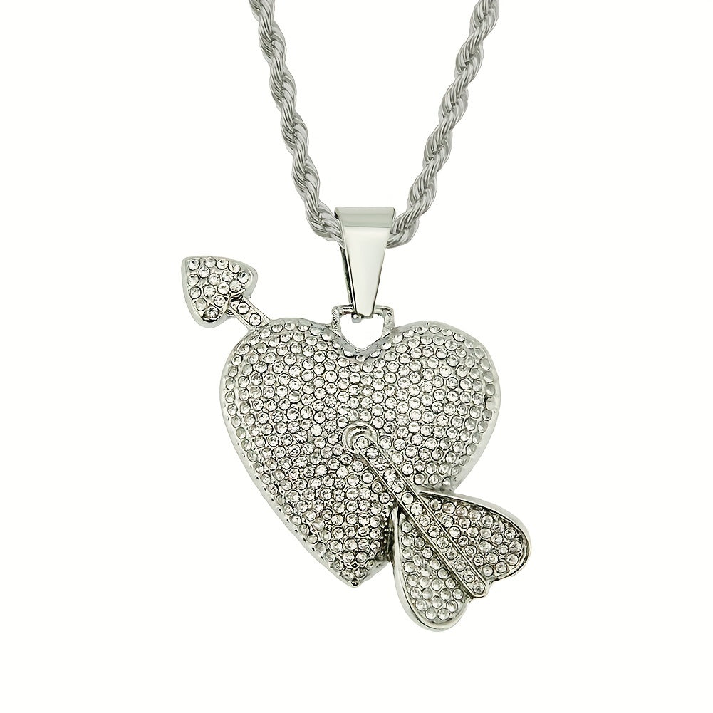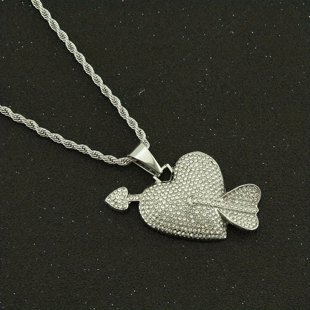 This diamond inlaid love heart pendant necklace features an arrow through the heart design, making it a stylish accessory. It is environmentally friendly plated and perfect for men.