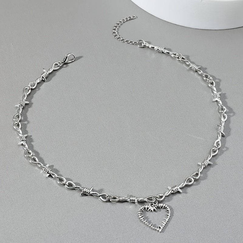This stylish necklace features a padlock pendant on a barbed chain with a heart-shaped accent. Perfect gift for any occasion.