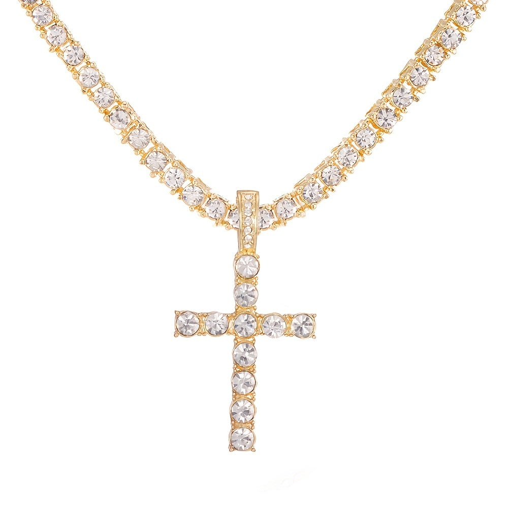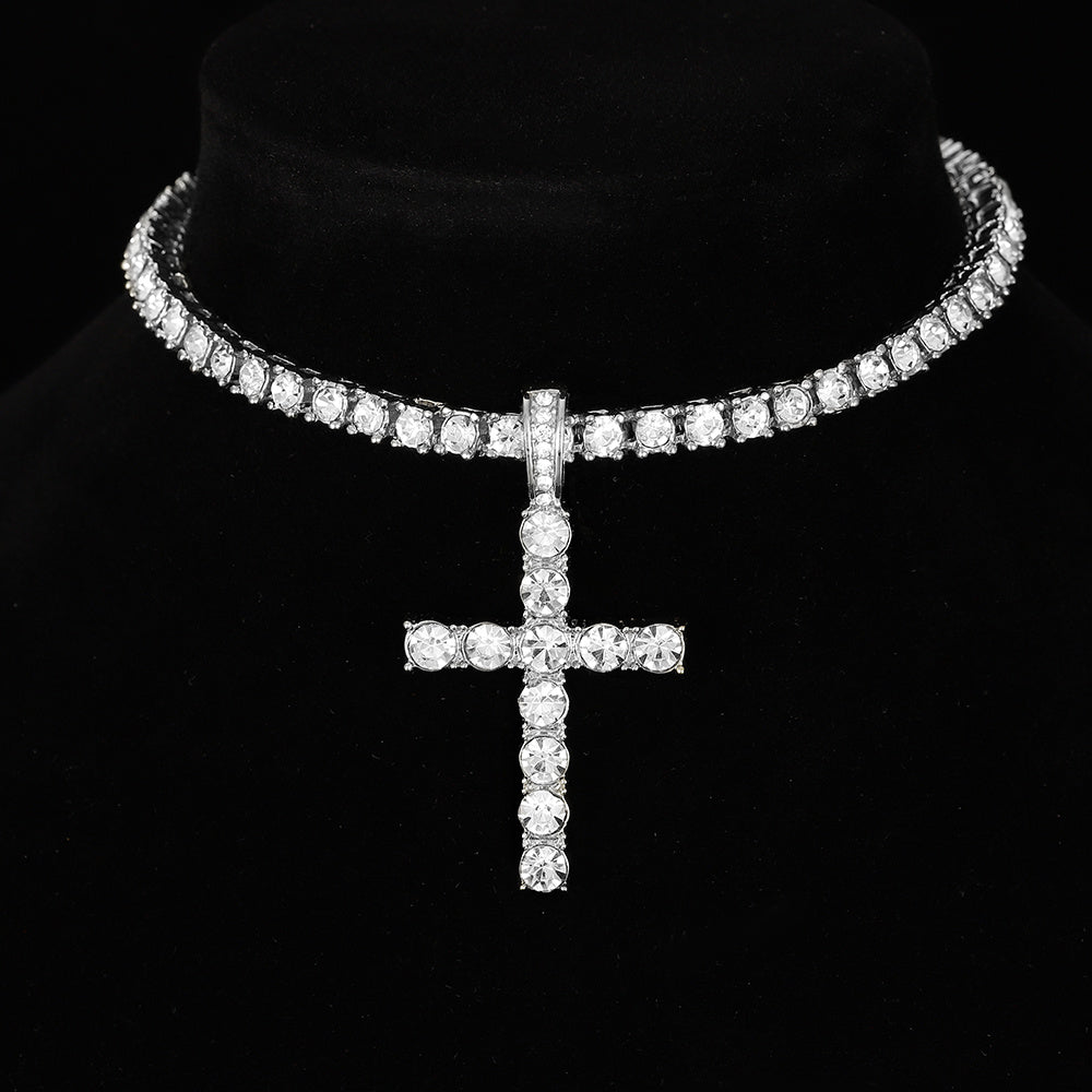 This trendy hip hop cross pendant necklace features a 4mm zircon tennis chain design. It is perfect for adding a touch of sparkle to your look. Great as a gift for a loved one!