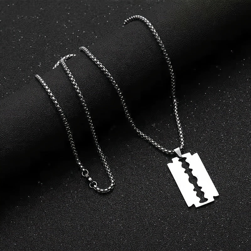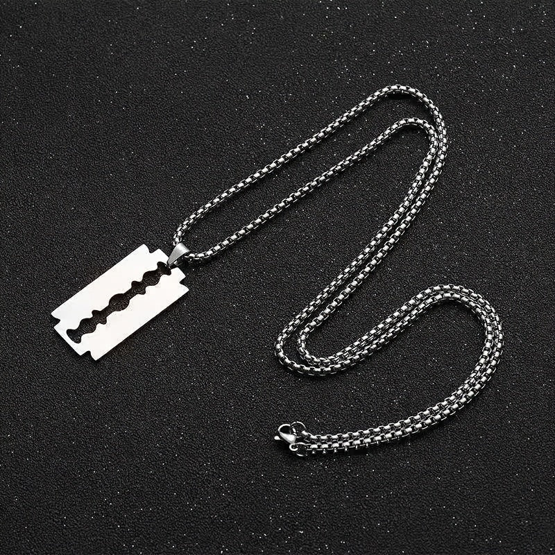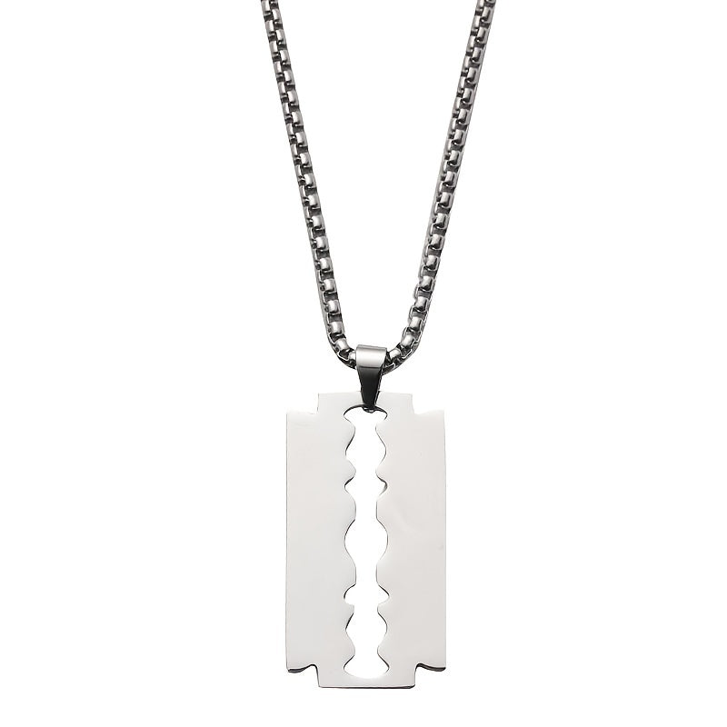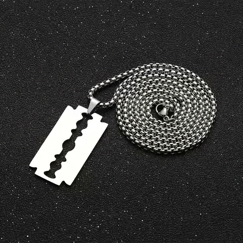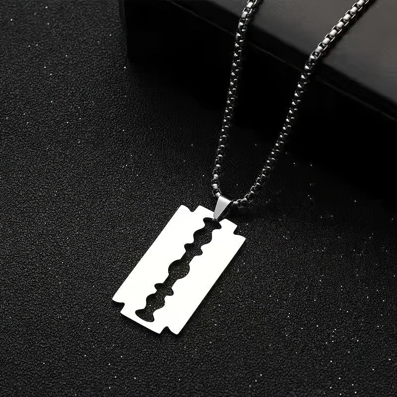Enhance your style with this European and American version hip hop razor pendant necklace. Suitable for both men and women, it is a versatile accessory that adds a unique touch to your outfit.